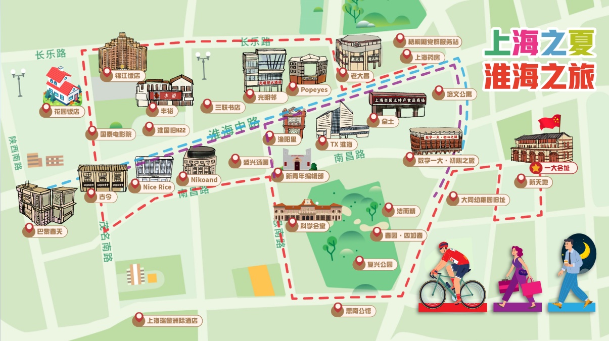 此外,在商圈党建联席会议的支持、指导下,特别推出“上海之夏·淮海之旅”红色路线,串联起“淮海红”各成员单位主题活动,营造商旅文融合的多元化购物与社交空间,为消费者带来一场难忘的夏日城市生活盛宴。推出骑行、步行与夜行3种模式共六条线路。在这里,你可以漫步“数字一大·初心之旅”VR沉浸式体验展、科学会堂、培文公寓等红色场馆和历史建筑,融入淮海路深厚的人文底蕴和魅力之源。可以打卡巴黎春天、TX淮海年轻力中心等潮流地标和时尚街区,畅享沪上最前沿的购物体验和炫酷潮趣。可以探索古今、光明邨等知名老字号品牌,感受文化故事中的经典传承和国潮力量。