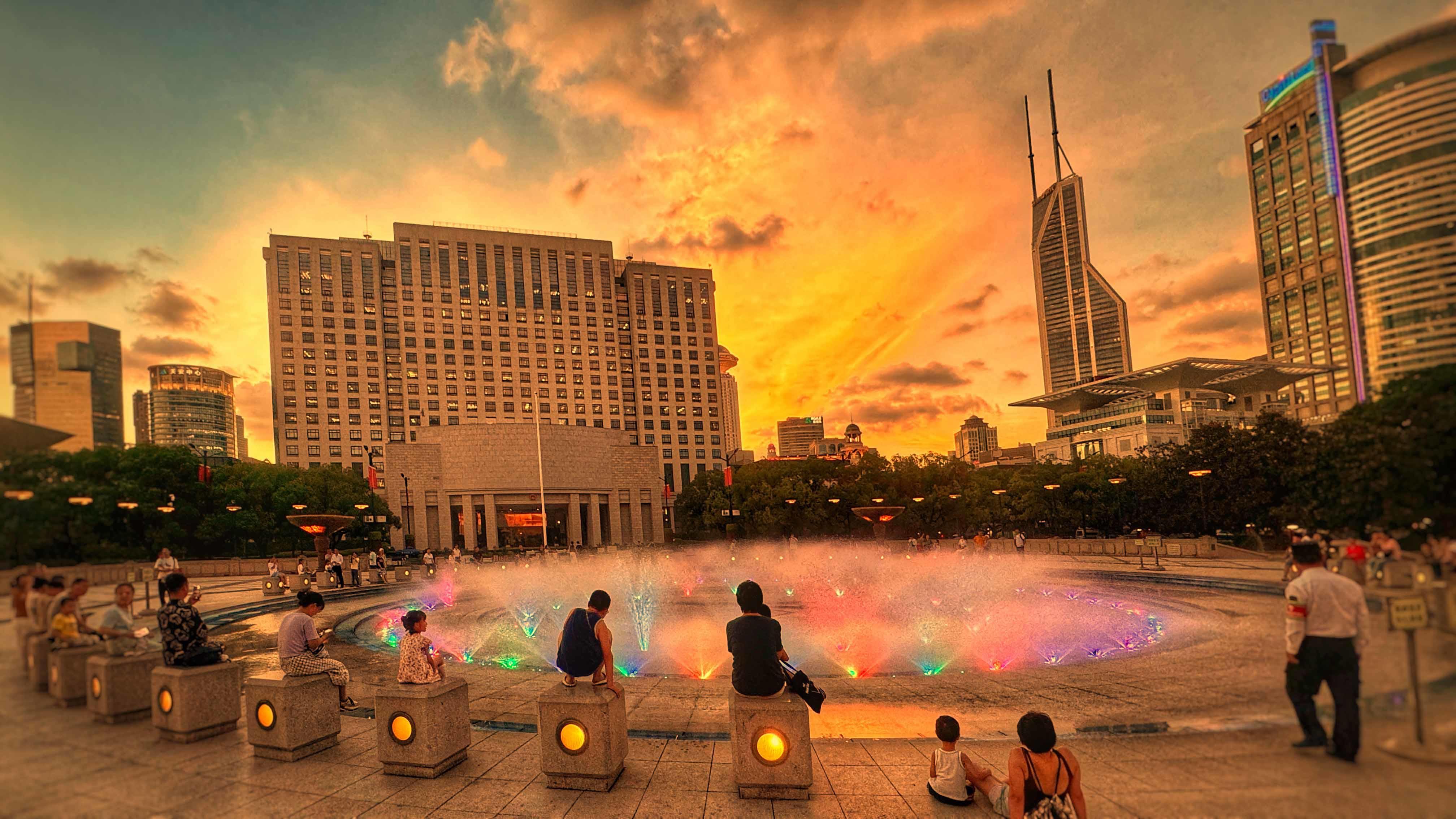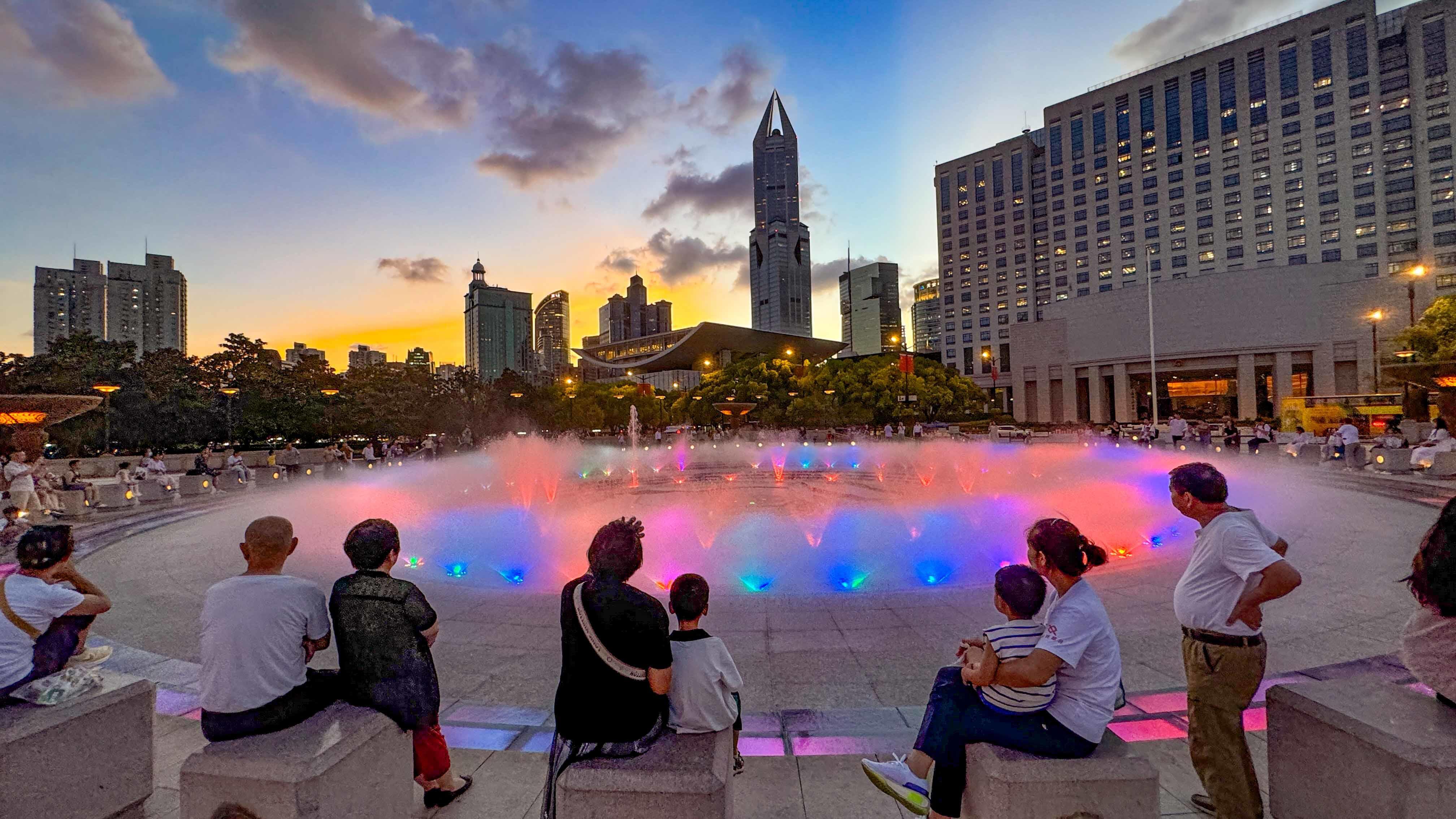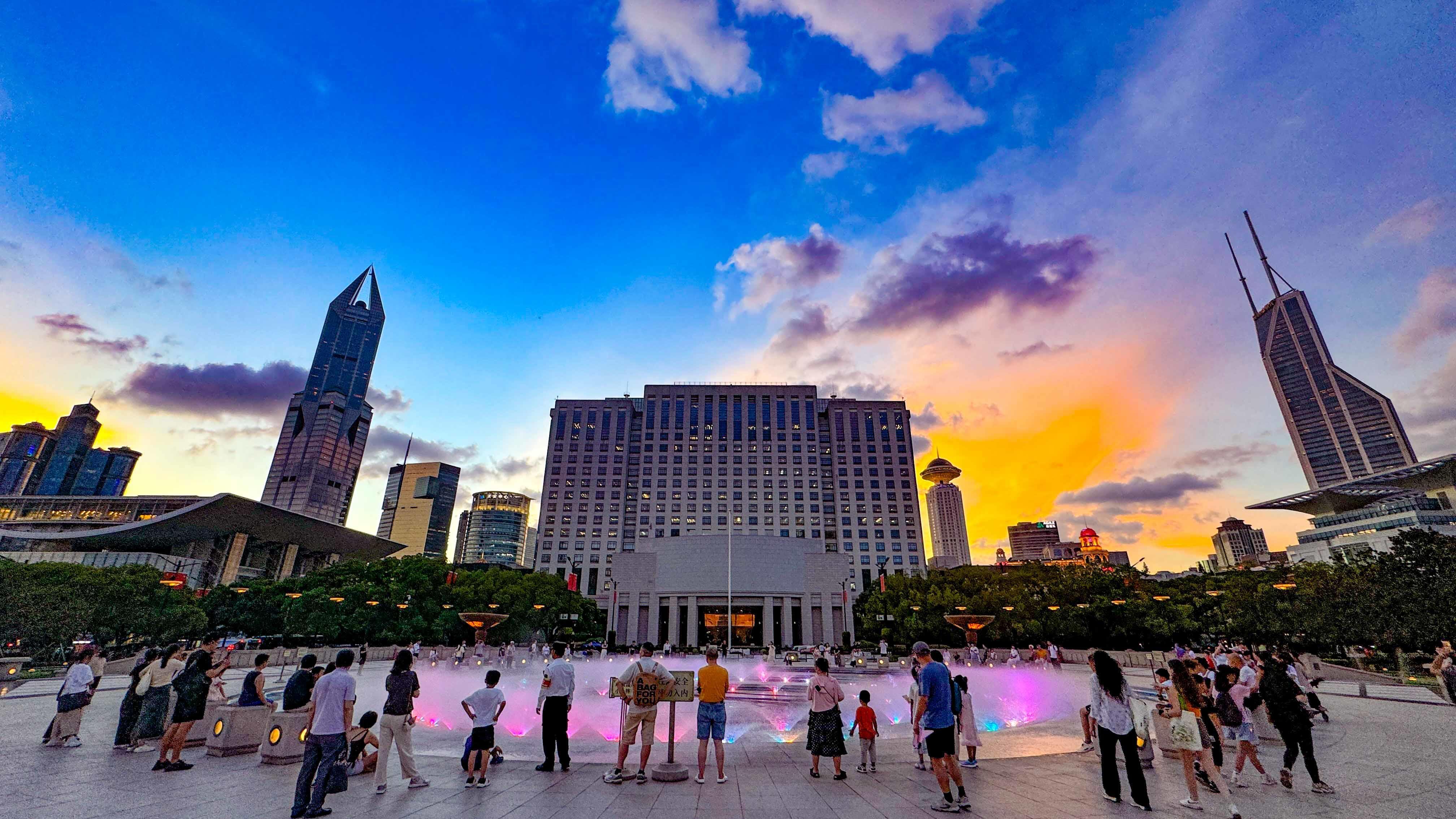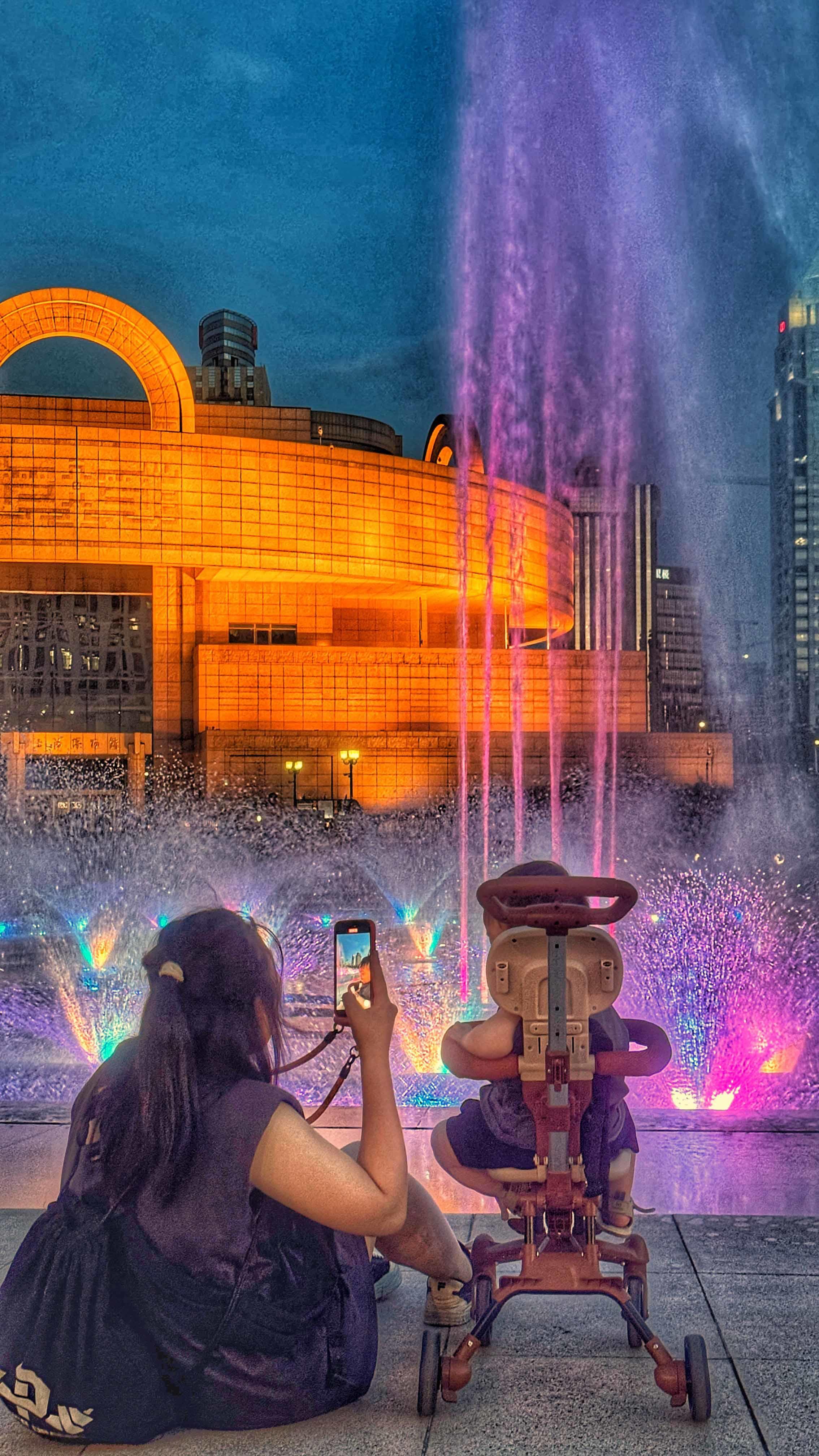 傍晚时分,周围的建筑灯光也加入这场光影盛宴,使整个广场变得更加生动活泼,在轻柔的夜风中,黄浦的夏夜充满了超凡的浪漫气息。