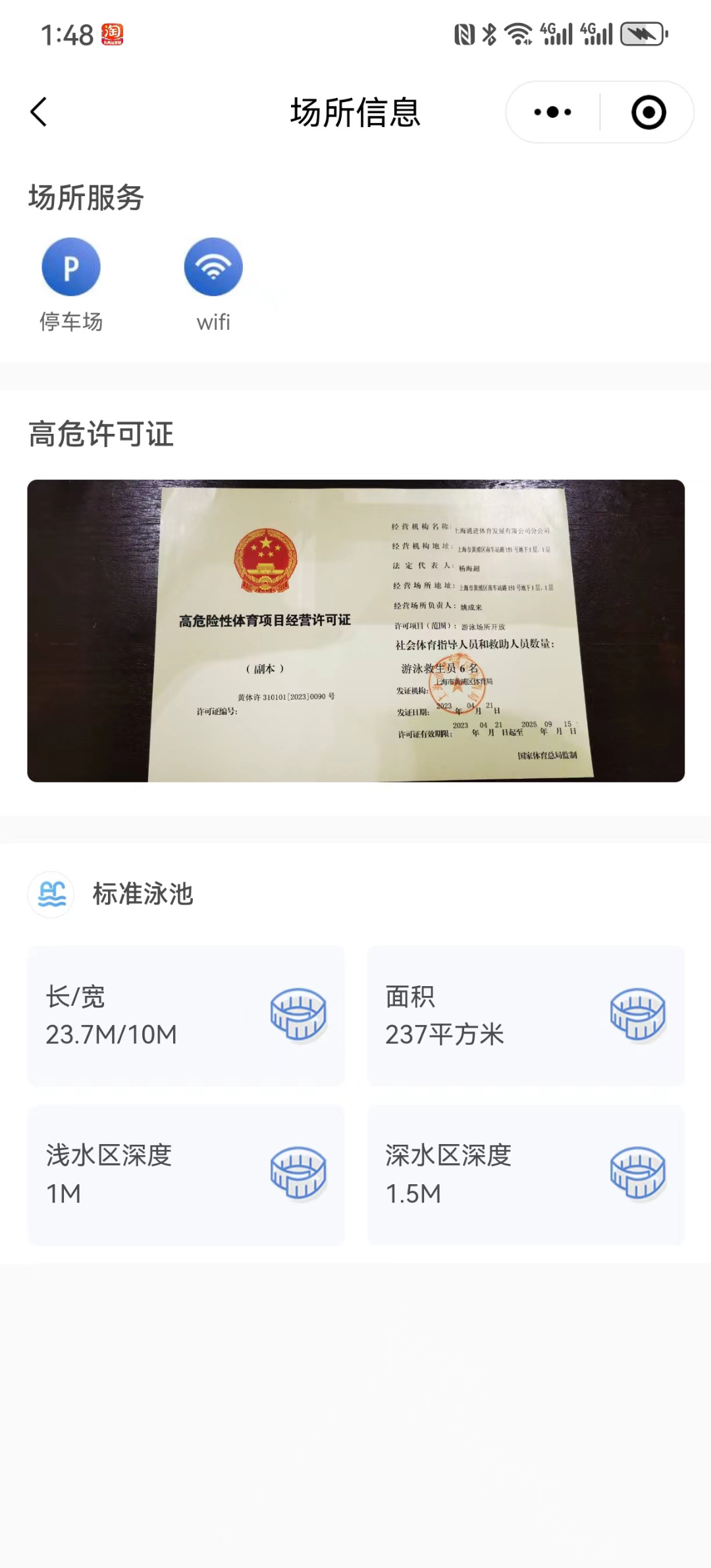据悉,市民们只需通过“安心沪动”小程序,便可轻松查询到相关游泳场所的场所信息、从业人员信息、营业时间等信息。该小程序还提供电子泳客健康承诺卡办理、保险购买等多项功能。