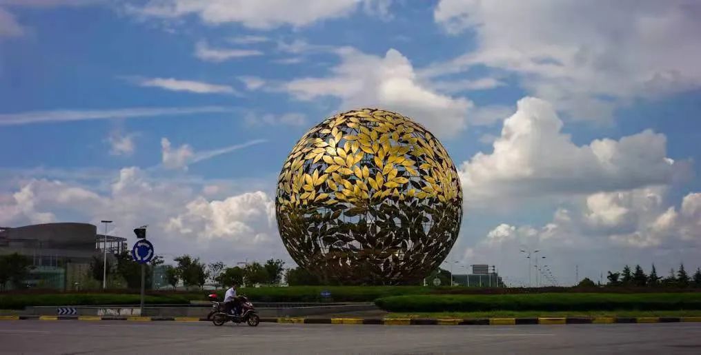 东方美谷大道交汇的环岛上