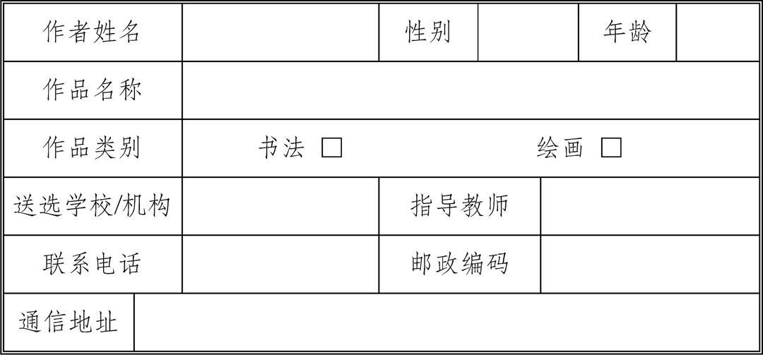 5.作品背面右下方写清或贴好作品登记表(复印、自制有效)统一样式如下: