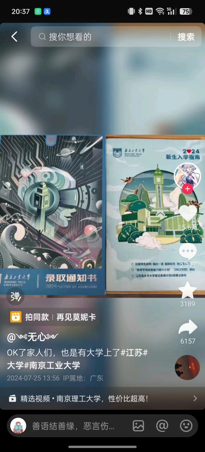 交汇点讯 7月25日,孙卓在自己的社交平台上发布视频称:“OK了家人们,也是有大学上了。”视频中显示,他已经收到了来自南京工业大学的录取通知书,被该校数理科学学院应用物理专业录取。