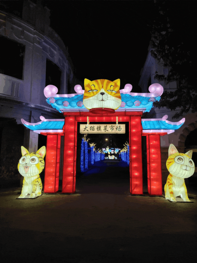 遍布全园的喵星人彩灯,是夜游的最大亮点之一。他们在夜色中散发出柔和而神秘的光芒,仿佛是喵星人的使者,引领着每一位游客进入这个喵趣世界。这些彩灯是自贡彩灯的创新设计,巧妙融合了现代创意与传统工艺的精髓。