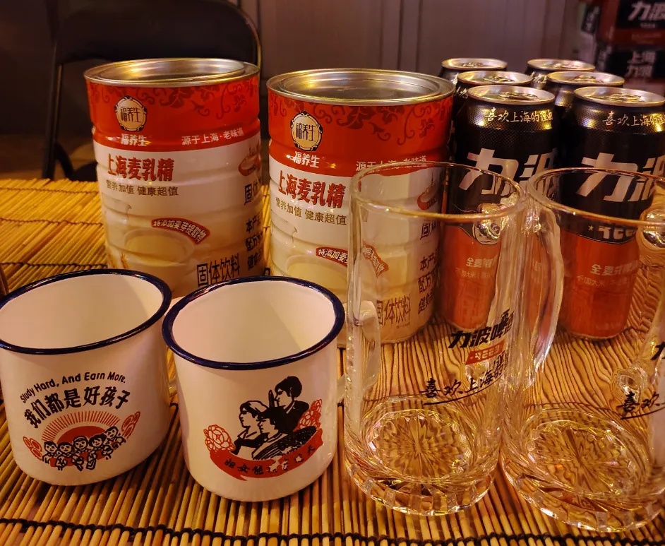 不止这些。现场还有演员生动地呈现着黄河路旁的弄堂生活,路边小吃店有棒冰、麦乳精、力波啤酒售卖,处处是旧时的回忆!
