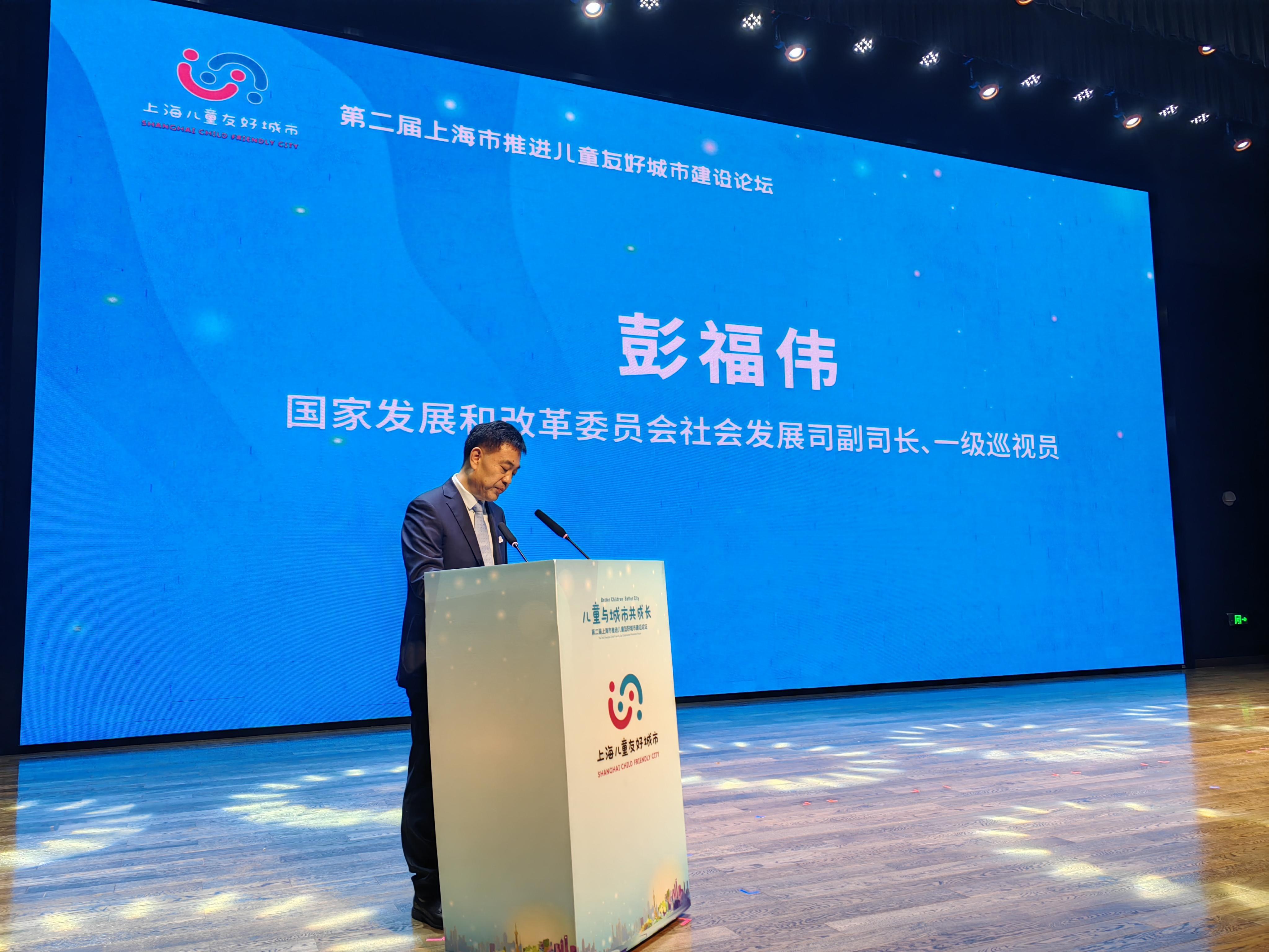 国家发展改革委社会发展司副司长、一级巡视员彭福伟,国务院妇儿工委办副主任王秀江,上海市发展改革委副主任、一级巡视员陈石燕为论坛致辞。