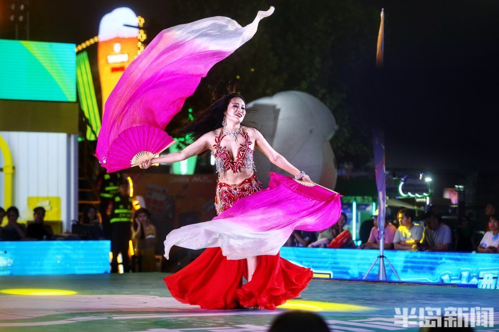 7月25日晚上,好运山东•第五届青岛时尚体育节——东方舞比赛在青岛西海岸新区金沙滩啤酒城热辣举行。据了解,本次大赛共有参赛选手700余名,涵盖少儿舞者、成人舞者、新锐名师舞者、中老年舞者等,每组舞者通过不同舞种的舞蹈,把精彩的表演展示给在场观众。