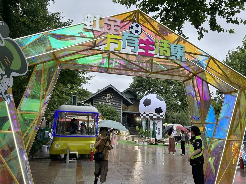 小虹火速赶到现场,为大家带来“前方报道”。此次“虹足万有生活集”设置在虹口足球场樱花大道及樱花广场(在轨道交通8号线6号出口即可步入市集),由主题场景打卡区、舞台畅享区、观赛休息区、互动游玩区、缤纷市集区五大区域组成,集结了夜市美食、运动体验、IP联动、露天电影等多元素活动,将文体商旅的相互结合,携手潮流体育运动的爱好者们,“让生活动起来,相约呐喊加油”。