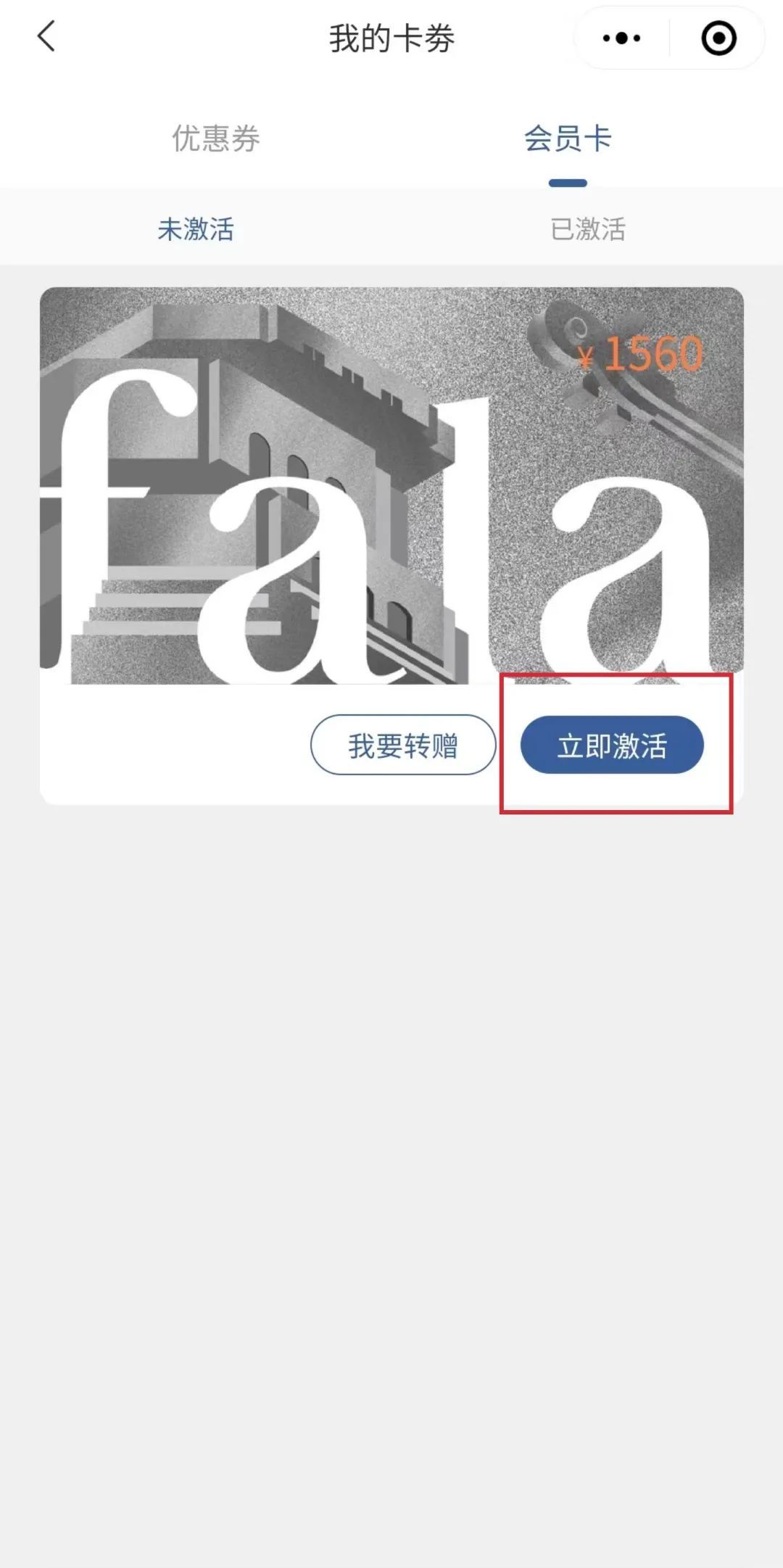 3、激活法拉卡,激活方式:点击【我的卡券】-【会员卡】-【立即激活】准确填写信息并提交。