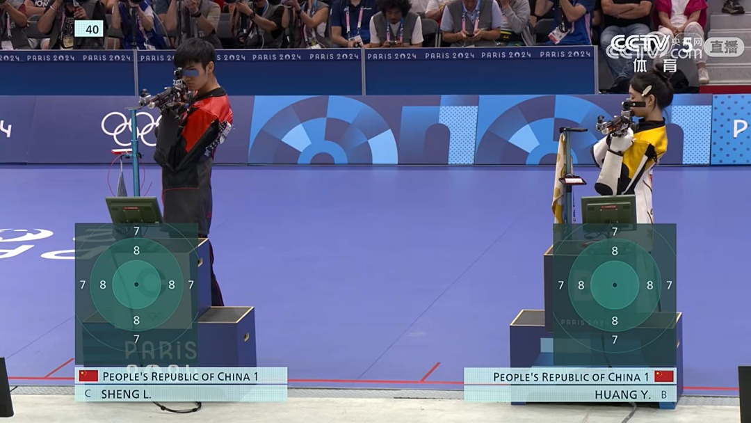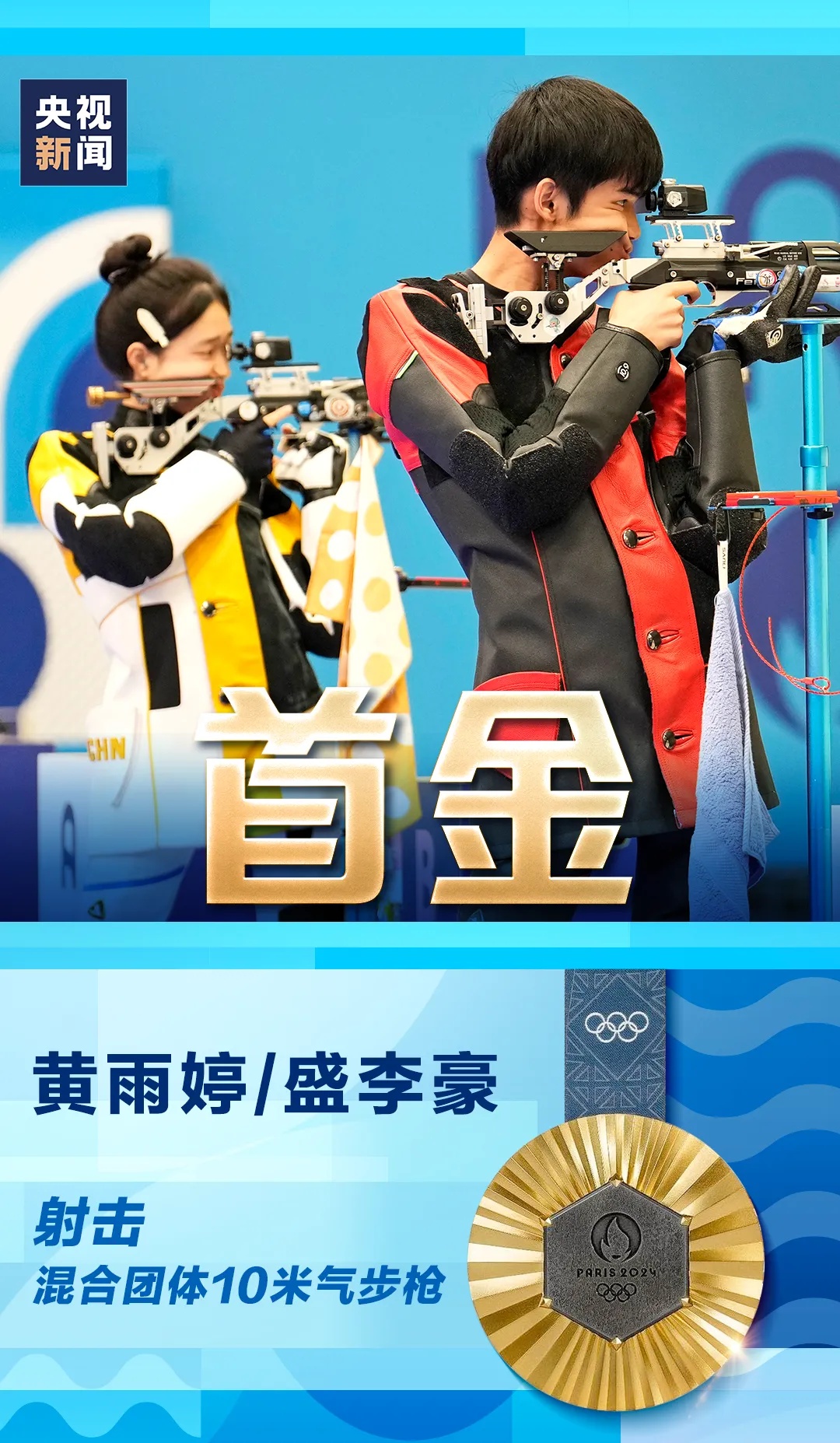 这是中国射击队首次连续两届奥运会射下首金,第5次赢得奥运首金,第8次夺得“中国首金”,此前7次分别是1984年的许海峰、2000年的陶璐娜、2004年的杜丽、2008年庞伟、2012年的易思玲、2016年的张梦雪、2021年的杨倩。本届巴黎奥运会,中国射击队派出黄雨婷/盛李豪、韩佳予/杜林澍这两对“00后”组合参赛。其中17岁的黄雨婷和19岁的盛李豪在赛前就被视为夺金的最大热门。