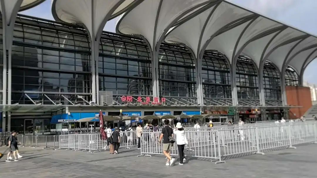 在上海站北广场,进站旅客络绎不绝地进入进站口,有序地安检、进站。在扶梯处、候车室,车站工作人员、志愿者、铁路民警随时为旅客的问询提供服务。