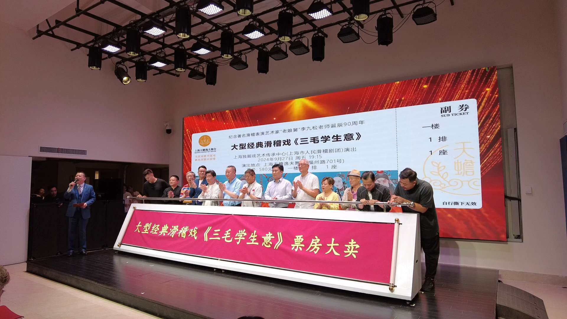 酷暑难减观众热忱,文化盛景燃情依旧。7月27日上午,大型经典滑稽戏《三毛学生意》新闻发布会在天蟾逸夫舞台隆重举行,发布会现场公布了暌违十一年之久的《三毛学生意》再次上演的消息。2024年是著名滑稽表演艺术家李九松老师的九十周年诞辰纪念日。李九松老师是著名滑稽大师文彬彬的嫡传弟子,曾经凭借海派情景喜剧《老娘舅》享誉上海滩。这次复排《三毛学生意》既是对前辈艺术家的深情致敬,也是对“三毛”这一经典形象的传承发展。