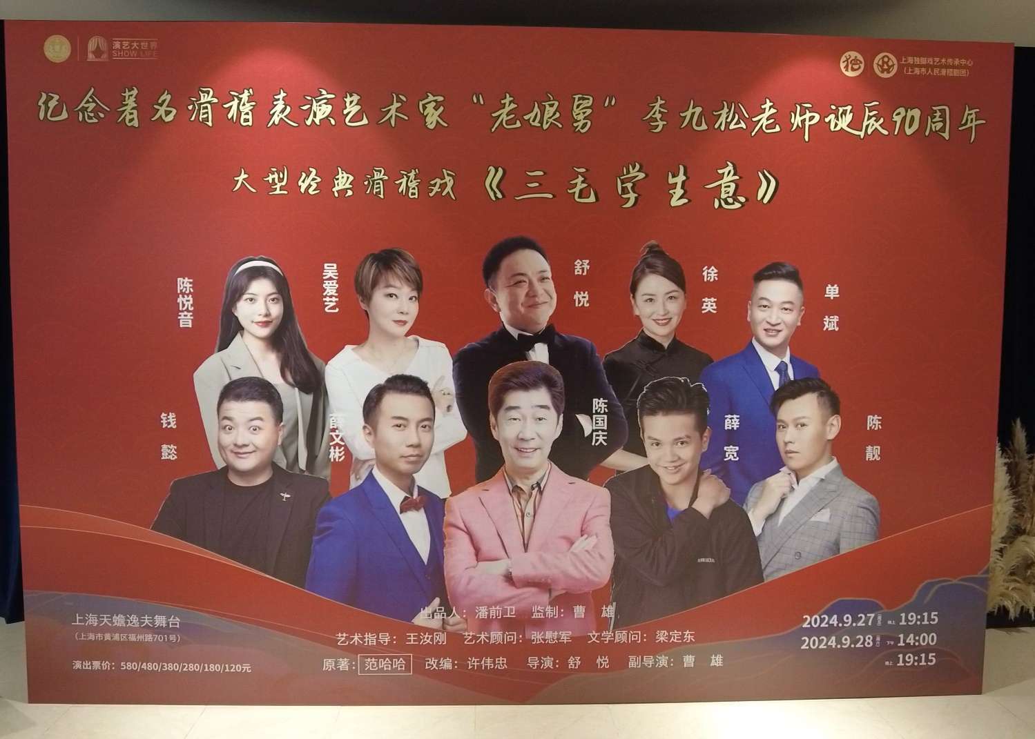 据悉,滑稽戏《三毛学生意》将于9月27日、28日在天蟾逸夫舞台连演三场,目前售票火爆进行中。预计,这场融合了传统与现代、继承与创新的滑稽戏将成为继《繁花》沪语热之后的又一海派文化盛事。
