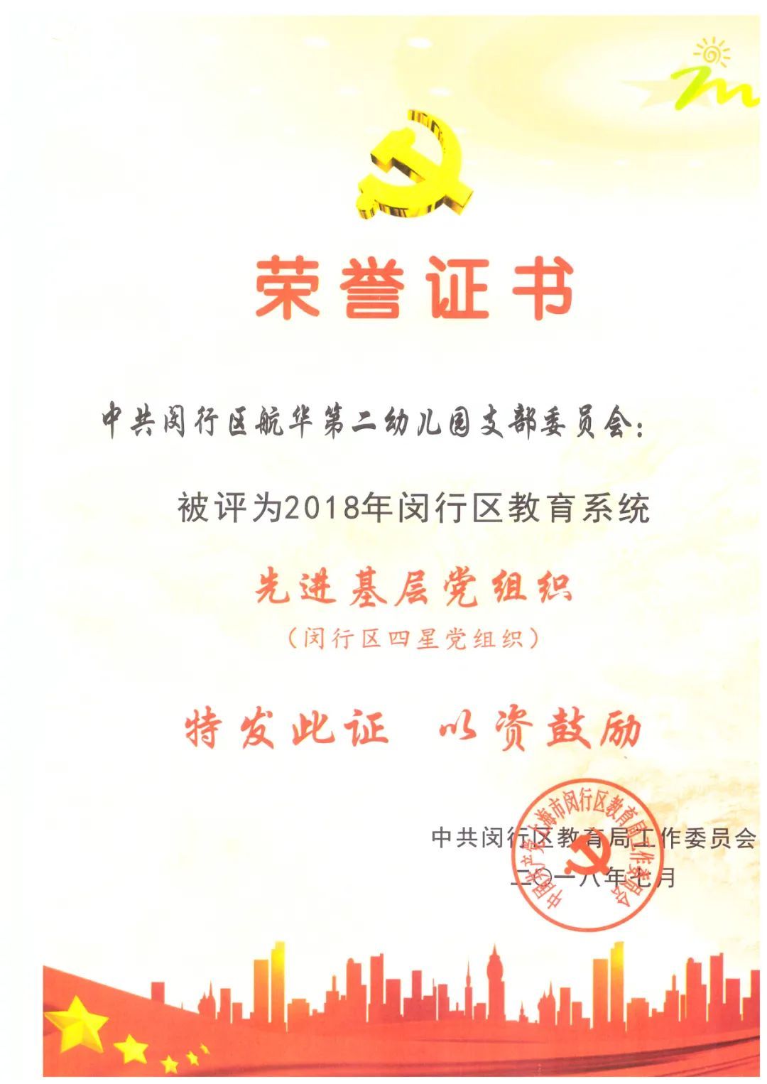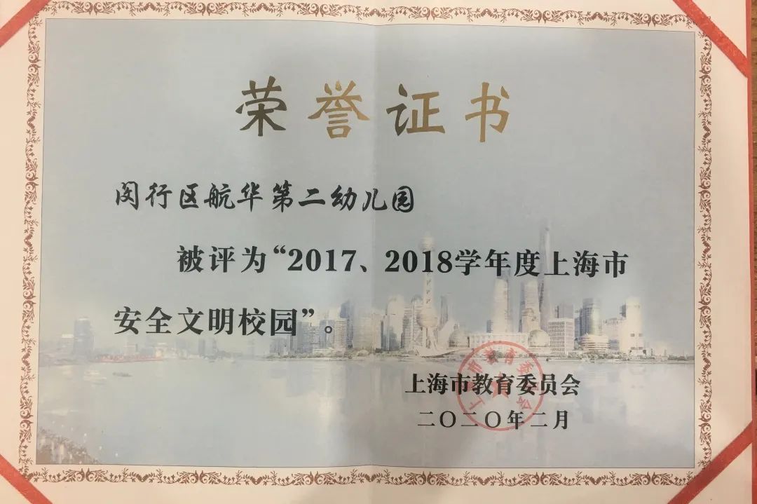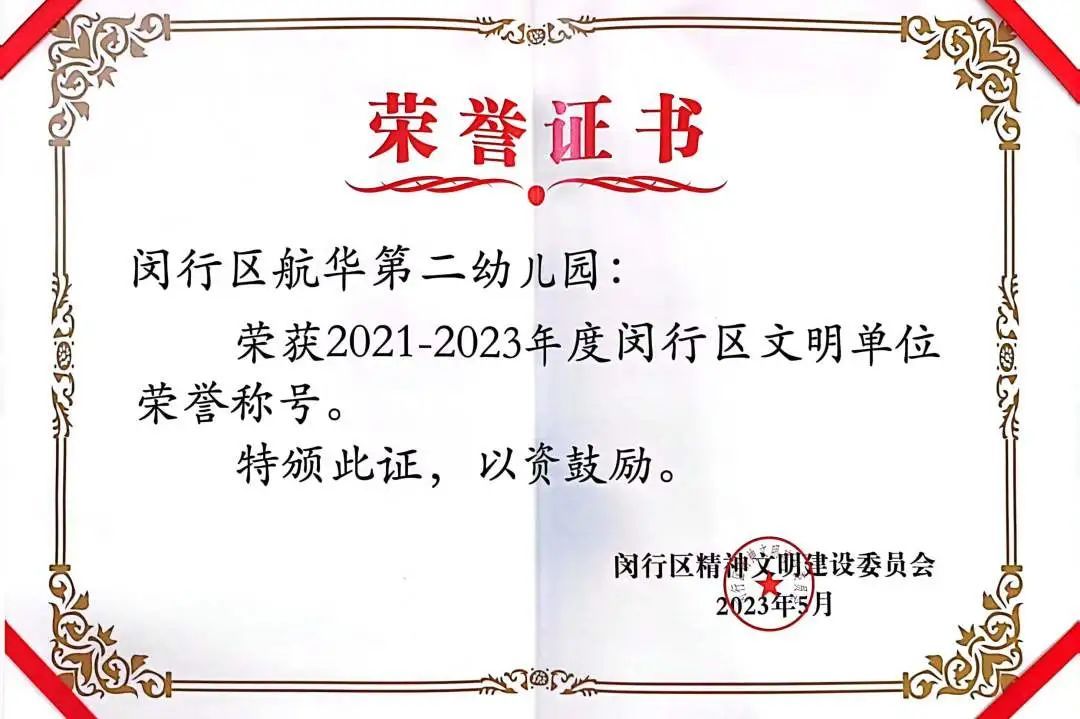 建园28年来,在上级部门的关心支持下,在全体教职工的努力下,幼儿园先后获得上海市安全文明校园、上海市中小学依法治校示范校、上海市家庭教育示范校、上海市巾帼文明岗、闵行区文明单位、闵行区四星党支部、闵行区低碳科普示范园、闵行区教育系统优秀教工之家等殊荣。更在2021—2023学年连续三年荣获闵行区中小幼办学质量绩效评估优秀等第奖。