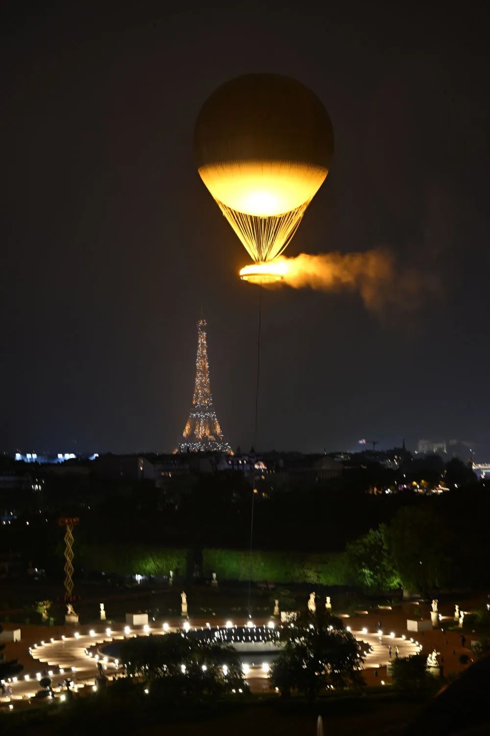 7月26日,观众观看从杜乐丽花园升起的主火炬