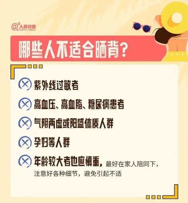 但肖智提醒,一切的养生与治疗都应当在保证不伤害自己的前提下进行。夏季晒背最主要的前提是要保证自己不被晒伤、不会中暑。