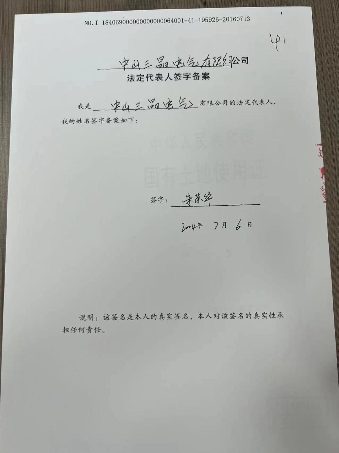 2004年7月份,朱荣华和卢雪明、幸志刚在中山市南头镇共同成立了中山三晶电气有限公司(下称“中山三晶”),朱荣华担任法人代表。3人的股权占比分别是卢雪明34%、朱荣华33%、幸志刚33%。