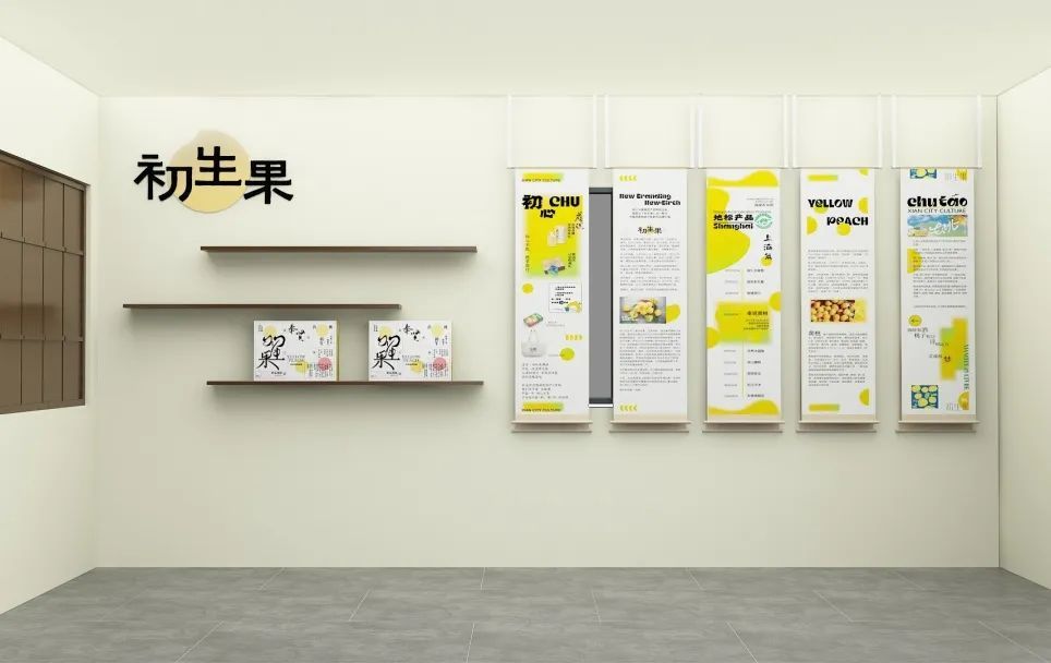 展馆以奉贤黄桃为核心,集中展示了奉贤黄桃的历史渊源和文化脉络,同时对初生果的品牌发展历程做了详细的阐释,展出相关礼盒以及周边,弘扬贤城文化,表达美好愿景。