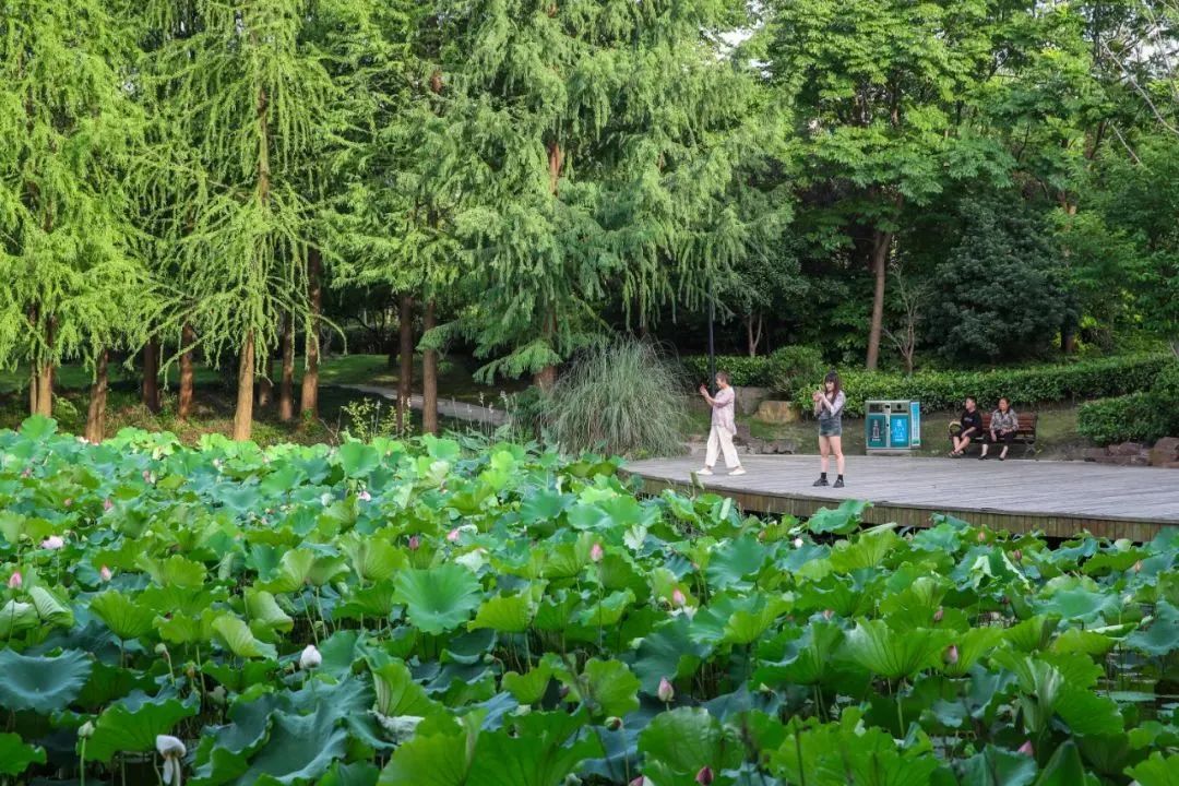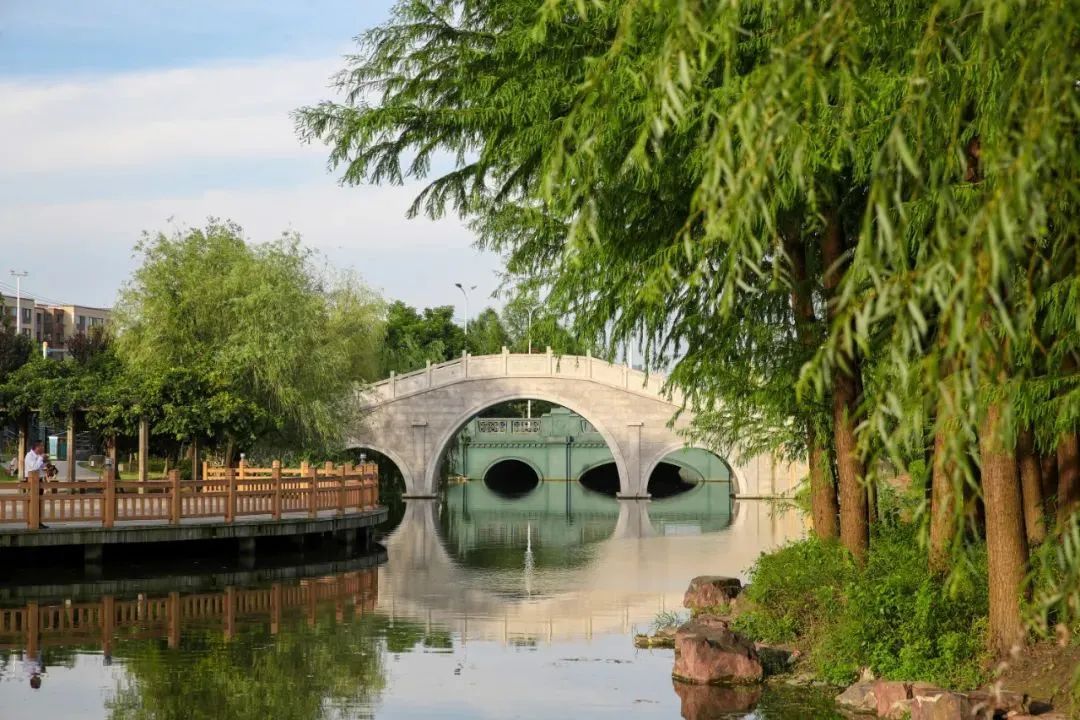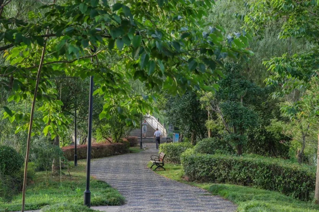 整座公园绿地凸显了小桥流水、江南水乡的特色,营建出了一幅环境优美、自然和谐的魅力画卷,成了附近市民休闲娱乐的好去处。