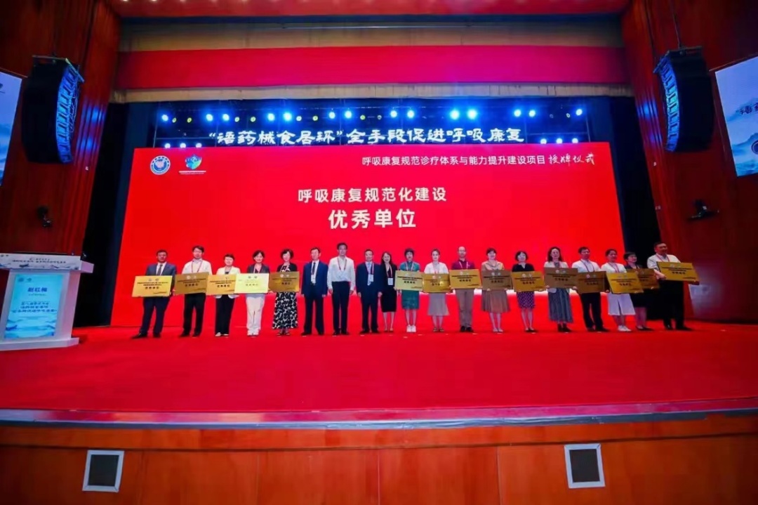 中国康复医学会第八届呼吸康复学术年会于2024年7月19至21日在贵州省贵阳市召开。在大会开幕式上,举办了首批呼吸康复规范化建设单位授牌仪式。瑞金医院凭借综合实力在参与评审的155家单位中脱颖而出,获评“中国康复医学会呼吸康复规范诊疗体系与能力提升建设项目呼吸康复规范化建设优秀单位”,全国仅15家单位获评优秀,呼吸与危重症医学科李庆云主任参加授牌仪式。