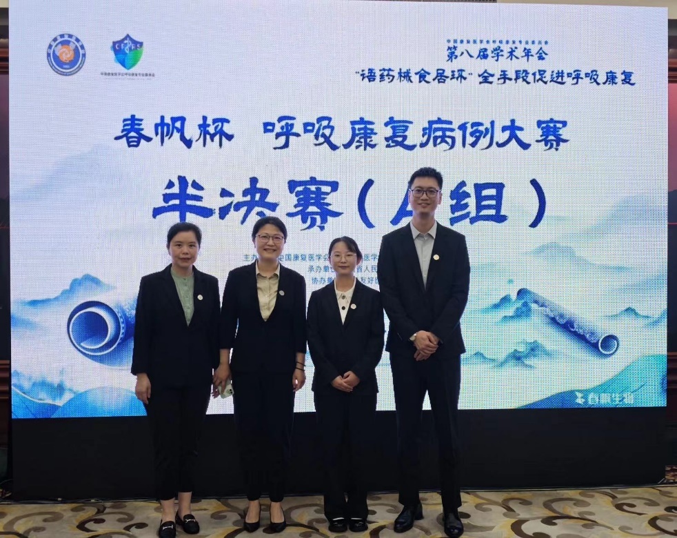 在关注度非常高的呼吸康复病例比赛环节中,由呼吸治疗师葛晓,康复治疗师孙昕,戴然然副主任医师和姚屹瑾护士长组成的团队过关斩将,勇闯半决赛。