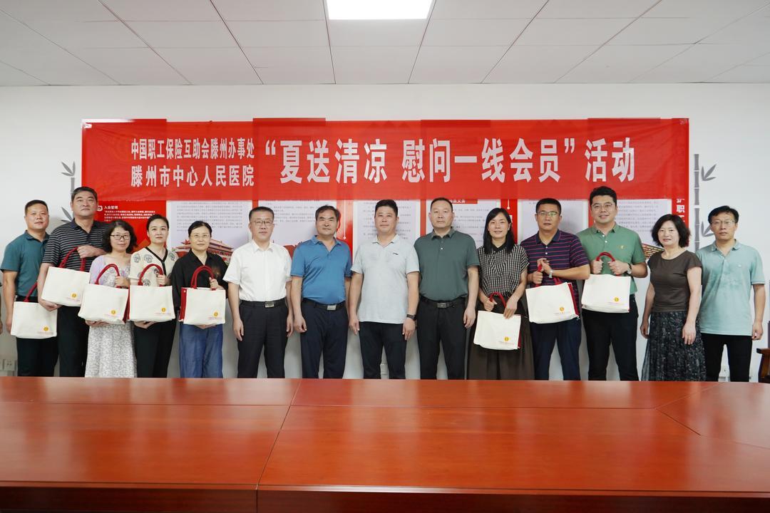 7月27日,中国职工保险互助会滕州办事处来滕州市中心人民医院开展“夏送清凉 慰问一线会员”活动。医院党委副书记朱绍猛,院党委委员、党群工作部主任王维,党委委员、纪委办公室主任、监察室主任李文,中国职工保险互助会滕州办事处主任张珊银,医院工会委员会代表、工会团组长、工会小组长代表,“善国善医”文明城市志愿服务队各队队长参加慰问活动。