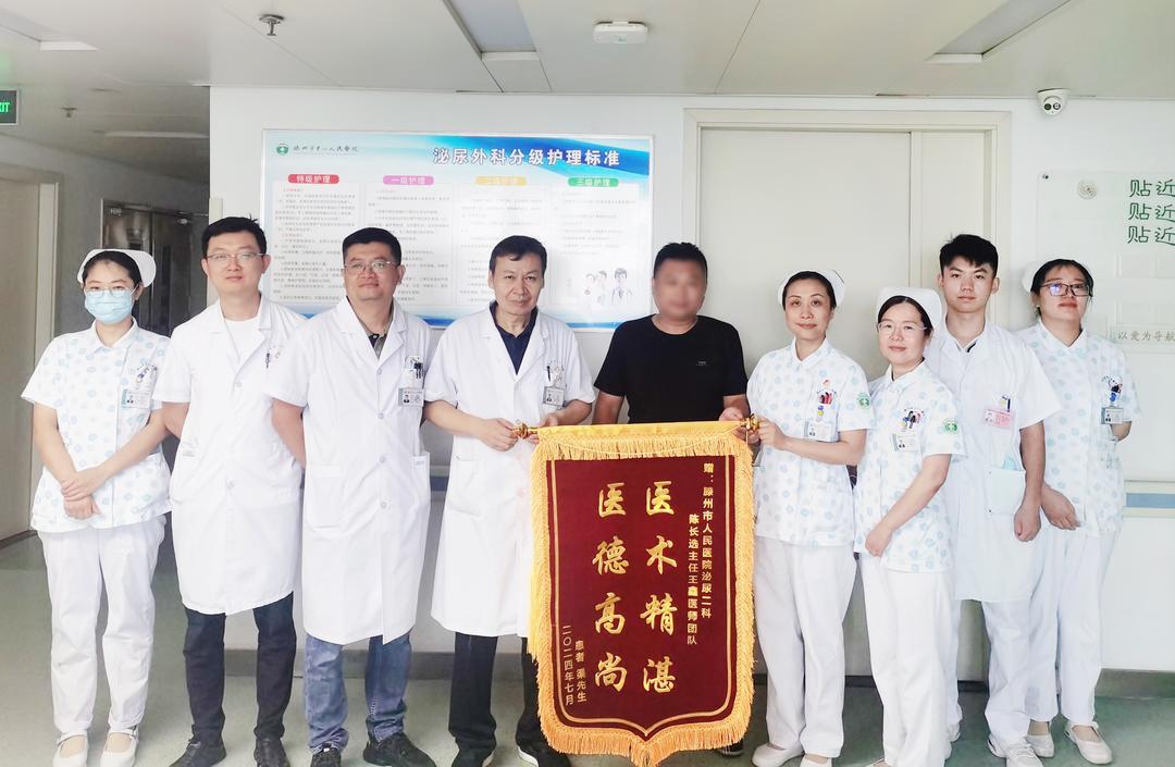近日,滕州市中心人民医院泌尿外科二病区微创手术成功治疗一例复杂巨大肾肿瘤患者。患者对治疗效果非常满意,并赠送锦旗表示感谢。
