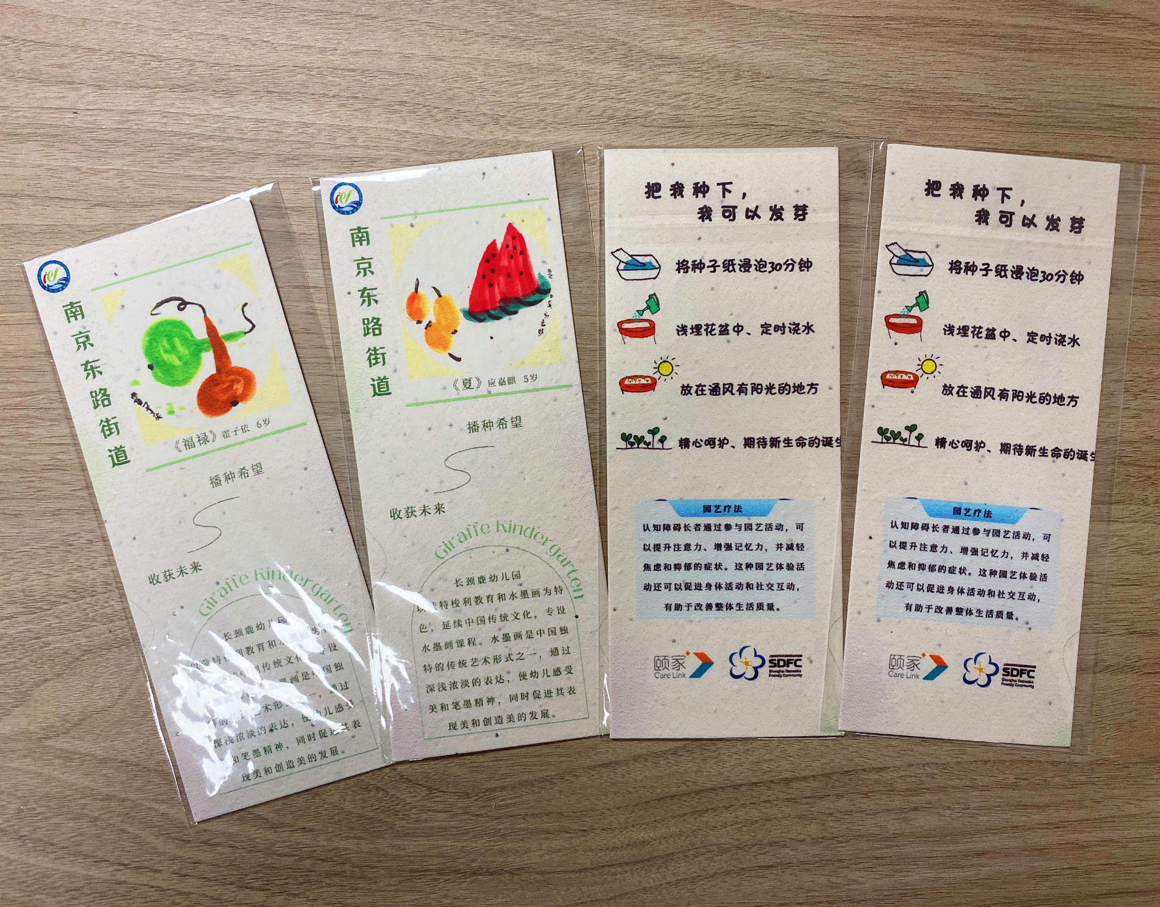 “小手拉大手,共建认知友好社区”系列活动还特别设置了制作了种子书签环节,寓意播种希望,旨在科普非药物干预认知障碍方法之一——园艺疗法,以帮助认知障碍长者进行康复训练并提升其生活质量。