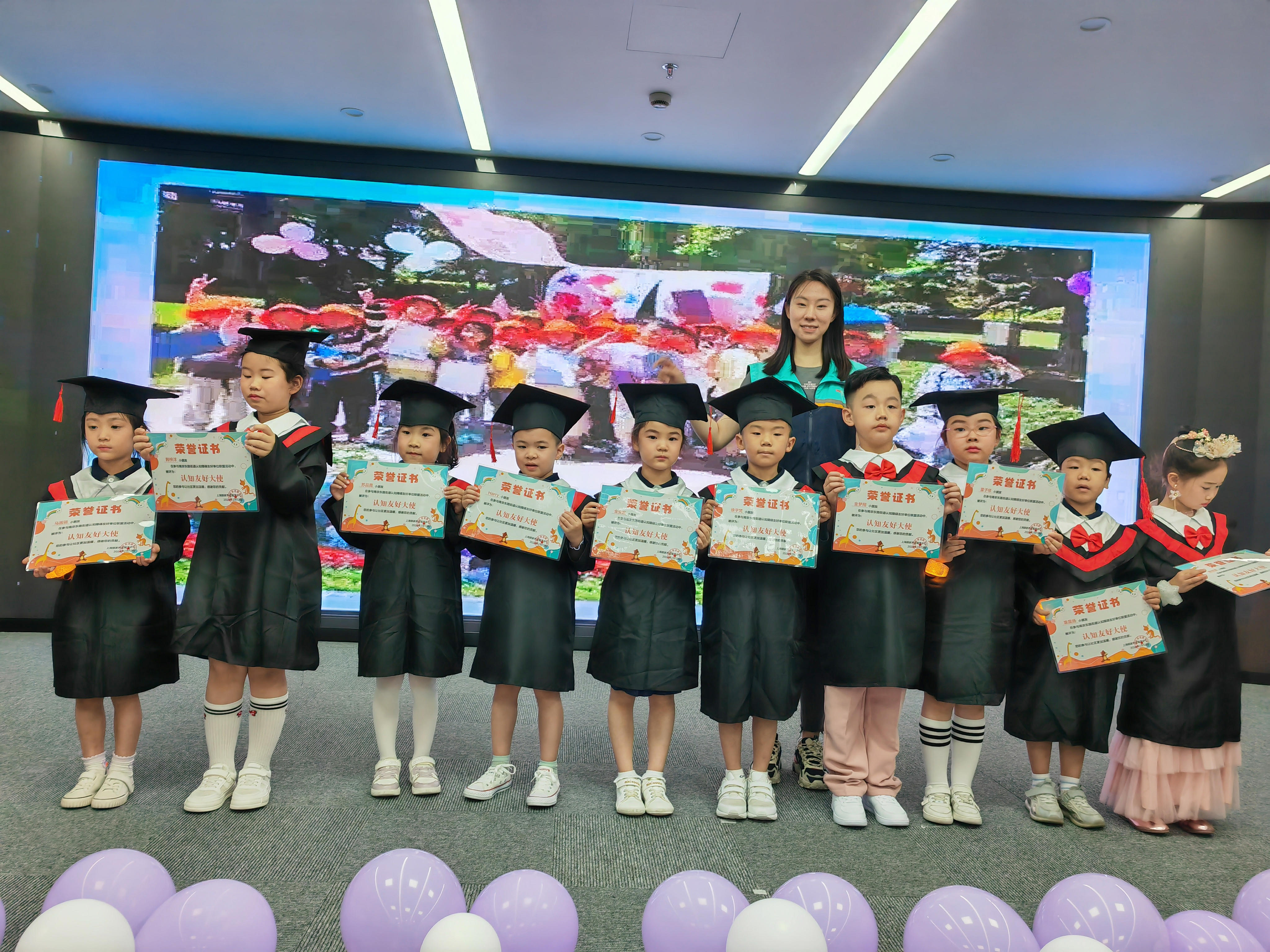 为了表彰小朋友们展现出的社会责任感,以及进一步激发亲子家庭参与认知障碍友好社区建设的热情,街道和认知障碍项目组还在幼儿园的毕业典礼上为孩子们颁发了奖项。家长们纷纷表示,“小手拉大手,共建认知友好社区”系列活动不仅加深了社区对认知障碍长者生活的认识,还促进了不同年龄群体之间的和谐与包容。