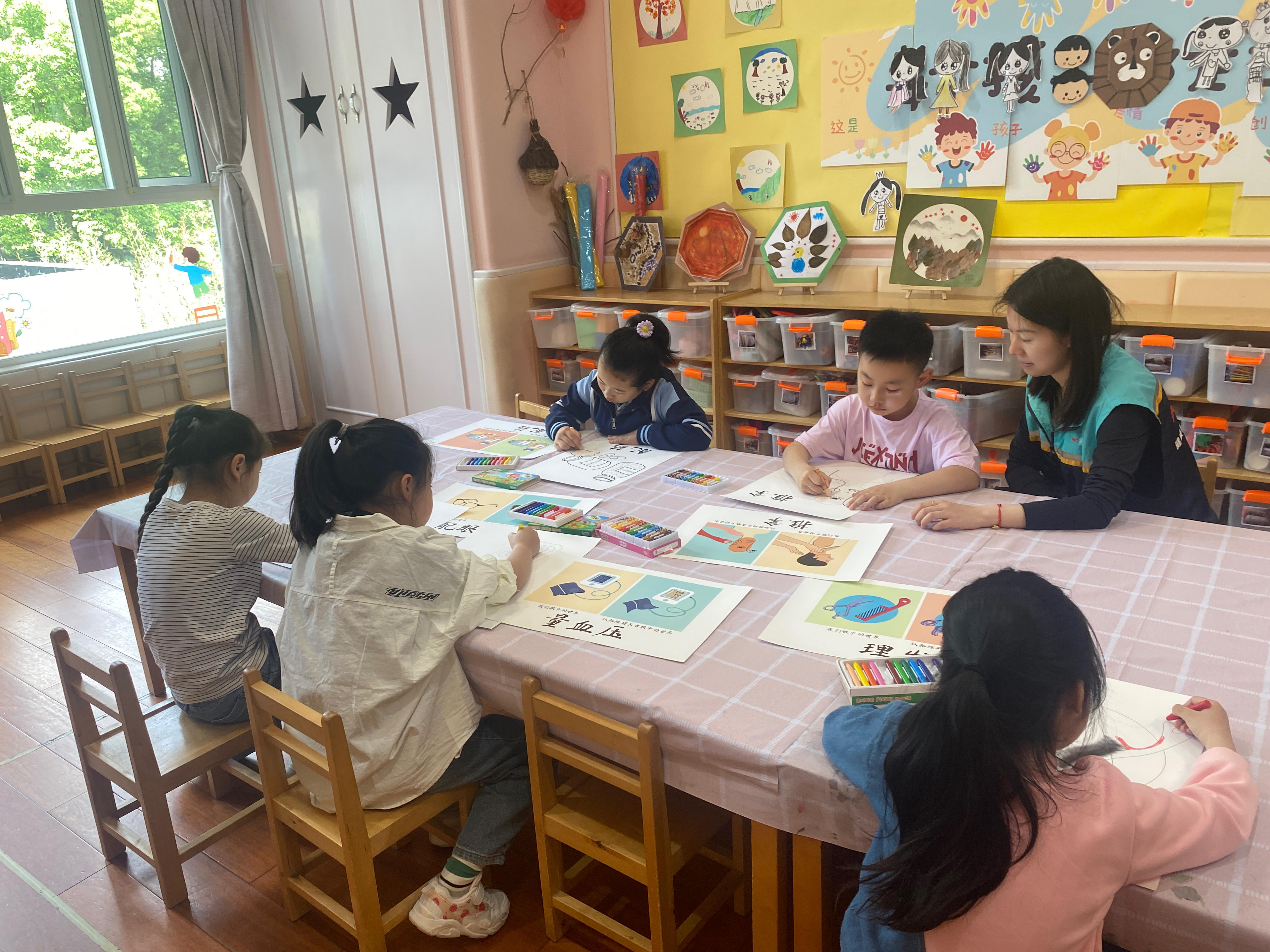 在“老少携手绘,认知障碍长辈眼中的世界”绘画活动中,长颈鹿幼儿园的小朋友们用画笔生动地描绘了认知障碍长者在日常生活中的挑战,例如难以识别日常护理动作或混淆物品使用方式等场景,以此帮助大家更加直观地理解认知障碍长者在视觉感知上的困难。