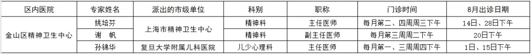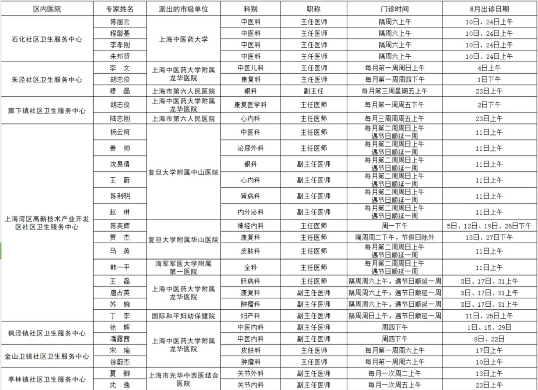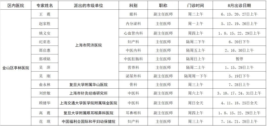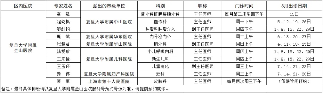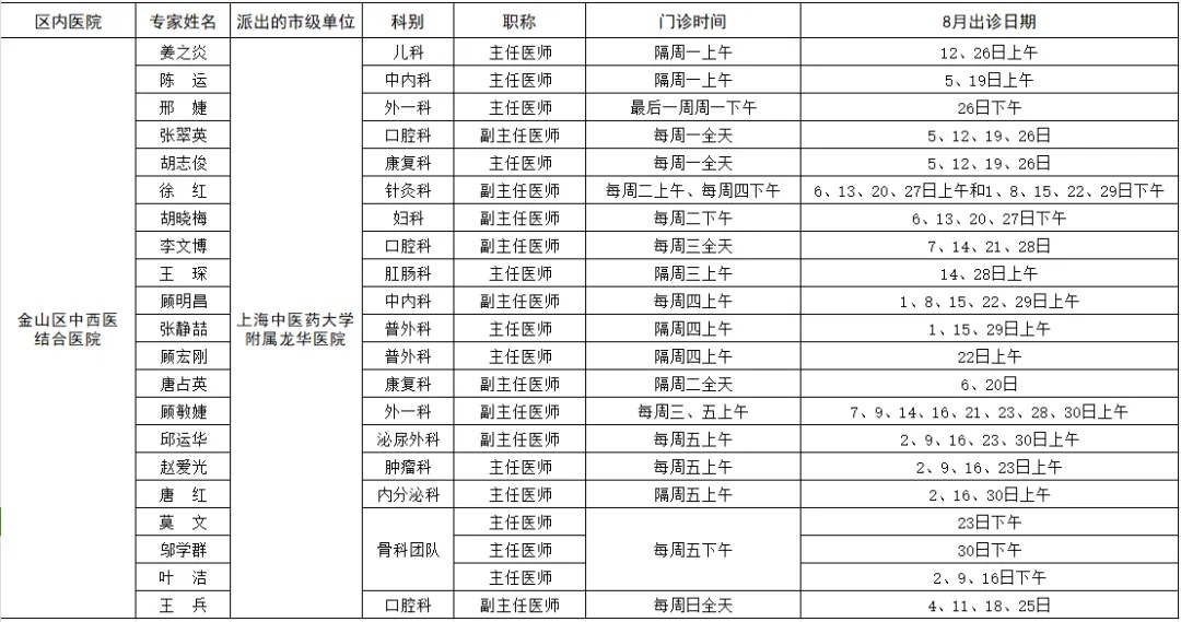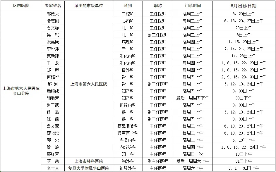 市级专家在金山的八月份出诊表出来了!阅读后收藏,接下来一个月的在金市级专家信息轻松掌握!
