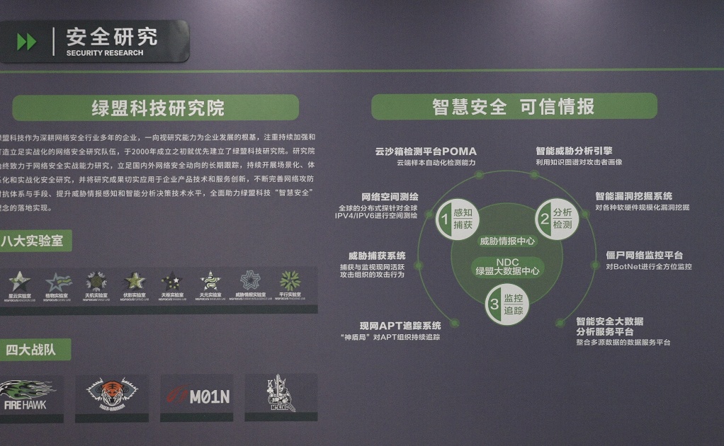 据介绍,绿盟科技致力于跟踪国内外最新网络安全技术,旗下八大实验室,分别专注于云安全、物联网安全、威胁感知与监测、漏洞挖掘与利用、数据智能、新型攻防对抗、网络空间安全战略、威胁情报八个领域,在基础安全研究和前沿安全领域进行积极的探索,为绿盟科技的核心竞争力的持续提升提供了有力的保障。