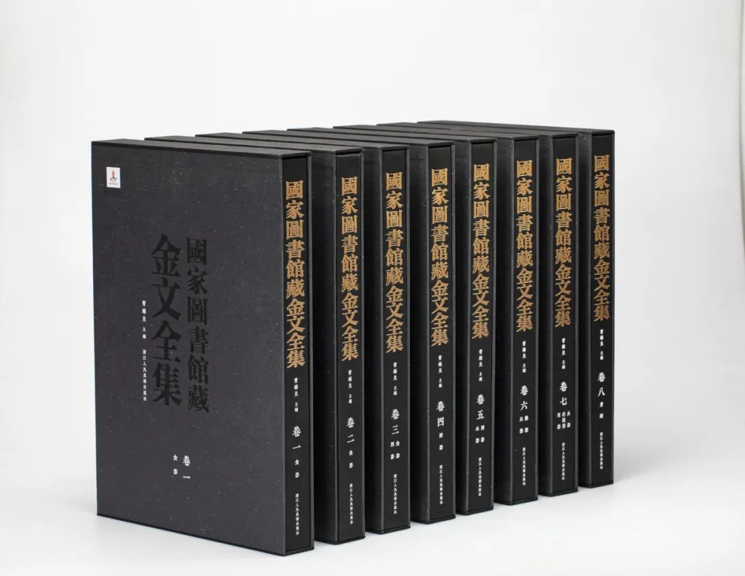 《国家图书馆藏金文全集》是基于国家图书馆馆藏清代 3000多件金文拓片基础上的一次全面整理,凡八卷,分食器、酒器、水器、乐器、兵器、用器、存疑器、著录,每一拓片,均经辨伪去重,由高清拍摄或扫描,除附上反映古文字学界最新研究成果的释文之外,还详细记录原拓的版心尺寸、来源、钤印等内容以及器物的年代、国别、现藏地等信息。全书共收录国家图书馆馆藏金文拓本2485件,是迄今为止种类最全、涉及馆藏金文藏品范围最广的一次展示。