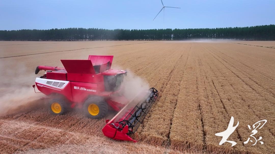 国产最大喂入量收割机雷沃谷神GS8180首战“三夏”。