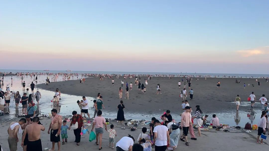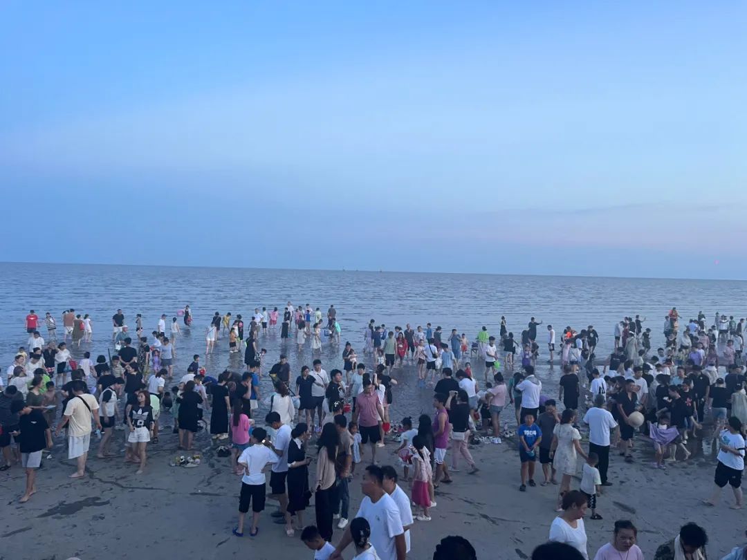 倪琴妹摄 夕阳西下,华灯初上,奉贤海湾旅游区的海边越夜越热闹。渔人码头在8月1日重新开放后也迎来了众多的市民游客,有来赶海吹海风的、晚餐后来散步游玩的、还有特地来夜市寻找美食的,全部汇聚到一起,让这里的“烟火气”分外浓郁。 晚上6点半,没有白天阳光的直晒,体感凉爽了不少,“赶海大军”的队伍很是庞大。渔人码头全新开放的入海口已经排起了长队,除了小朋友拿着各类挖沙工具兴奋不已,不少大人也是小铁铲、水桶一应俱全,大家都迫不及待飞奔到铁板滩涂上,和海水亲密接触,和藏在沙滩中的贝壳、螃蟹、蛤蜊等斗智斗勇。 不过,此时海水已经开始涨潮,游玩的区域肉眼可见的逐渐缩小。现场有几位工作人员,同时沿着涨潮区域不断来回走动,提醒市民游客尽快往岸边行走,岸上的喇叭也持续不断播报,提示大家涨潮情况,尽快回到安全区域。“下次我一定看好潮汐时间再来玩,要早点来。”市民张女士一家三口吃好饭特意来游玩,本来预计在铁板滩涂上玩一小时,没想到才十分钟就开始涨潮,不得不返回人工沙滩区域。 “大家来游玩前一定要查看潮汐时间表。”上海碧海金沙投资发展有限公司总经理吴春芳介绍:“人流量集中的时间段是退潮期间,大概在下午4点到6点,一下子入海口就很多人排队,截止到晚上7点,差不多下海了3000人次左右。” 正值暑假,渔人码头景区恢复开放后,当地派出所也会在景区出入口、海堤沿线等人员密集区域,增派警力加强巡逻,包括警用无人机、巡逻车、巡逻助动车等多种方式巡查,以保障市民游客安全。公安奉贤分局海湾派出所副所长宋剑锋表示:“民警和海防员全部上岗,在现场执勤,加强秩序维护,确保市民游客安全。” 夜幕慢慢降临,赶海的人群慢慢回到岸上,此时游乐园中灯光璀璨,碰碰车、海盗船、旋转摩托车等等,每个区域都是欢声笑语,热闹非凡。 此外,来海边怎么能没有美食?玩得尽兴的市民游客还可以在附近的海国夜市逛上一圈,海鲜烧烤、特色小吃、冰爽饮品应有尽有,也是人气十足,相信一定会让你不虚此行!