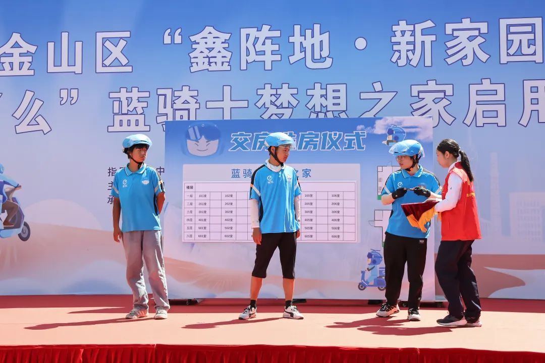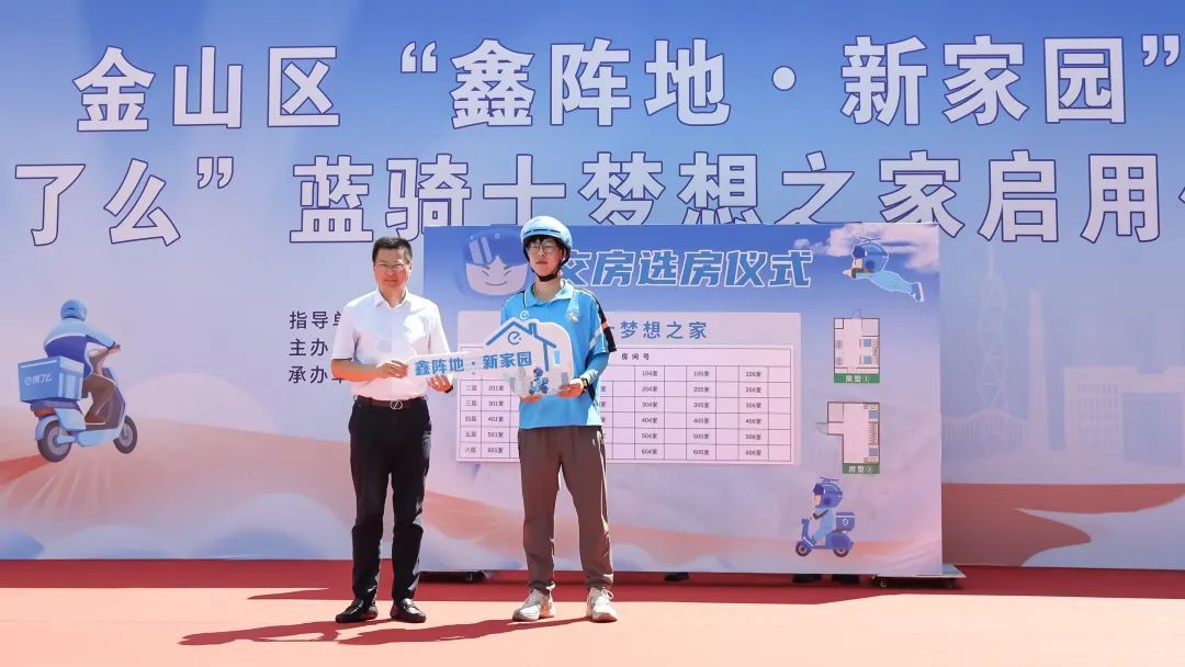 7月31日上午,在金山区金山卫镇梦想家园新时代城市建设者管理者之家,金山区“鑫阵地·新家园”“饿了么”蓝骑士梦想之家正式启动,旨在聚焦以外卖小哥为代表的新就业群体生活所需,解决外卖小哥“安居难”的困扰。