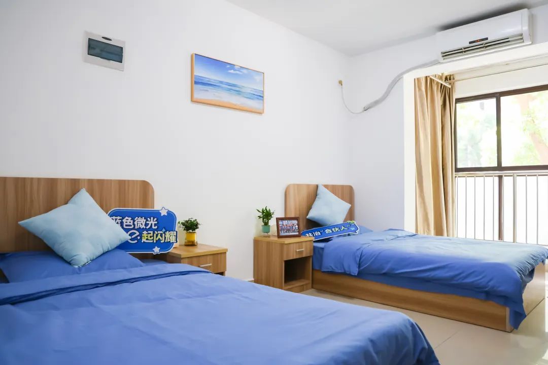 在“饿了么蓝骑士梦想之家”50号楼里,35套公寓房干净明亮,根据不同的配置,每月的租赁价格在780元到900元不等。同时,每套房间都设有独立阳台和卫生间。此外,楼栋内还设有公共晾晒区、公共活动区域等,一站式满足生活所需。