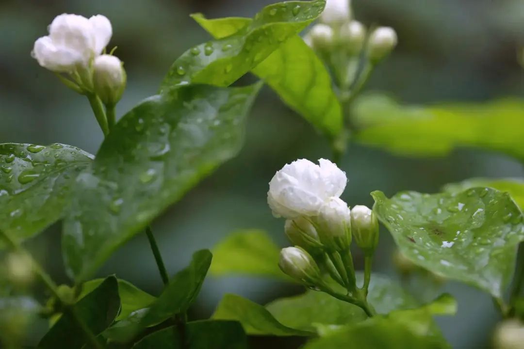 每年五至八月,绽放的茉莉花总是给炎炎夏日,增添了一分清新颜色。雪白的花,嫩绿的叶,悠远而淡然的香味,好似一个安静美丽的女子,梨窝浅浅,宛然一笑。如果再下一场雨,那就更美了。雨后的茉莉,混了夏日雨气,清香弥漫在整个空气里。