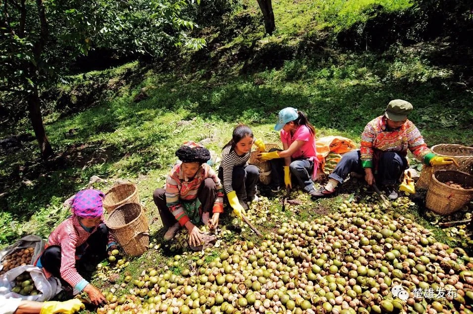 2001年,大姚县被国家林业局命名为“中国核桃之乡”;2019年、2022年两度被省政府列为首批核桃产业“一县一业”示范创建县。近年来,大姚县坚持规模化、专业化、绿色化、组织化、市场化“五化联动”,切实以二产带动一产促进三产,以科技赋能乡村振兴,核桃产业成为全县群众受益面最广、产业带动性最强、发展潜力最大的优势产业、绿色产业和富民产业。