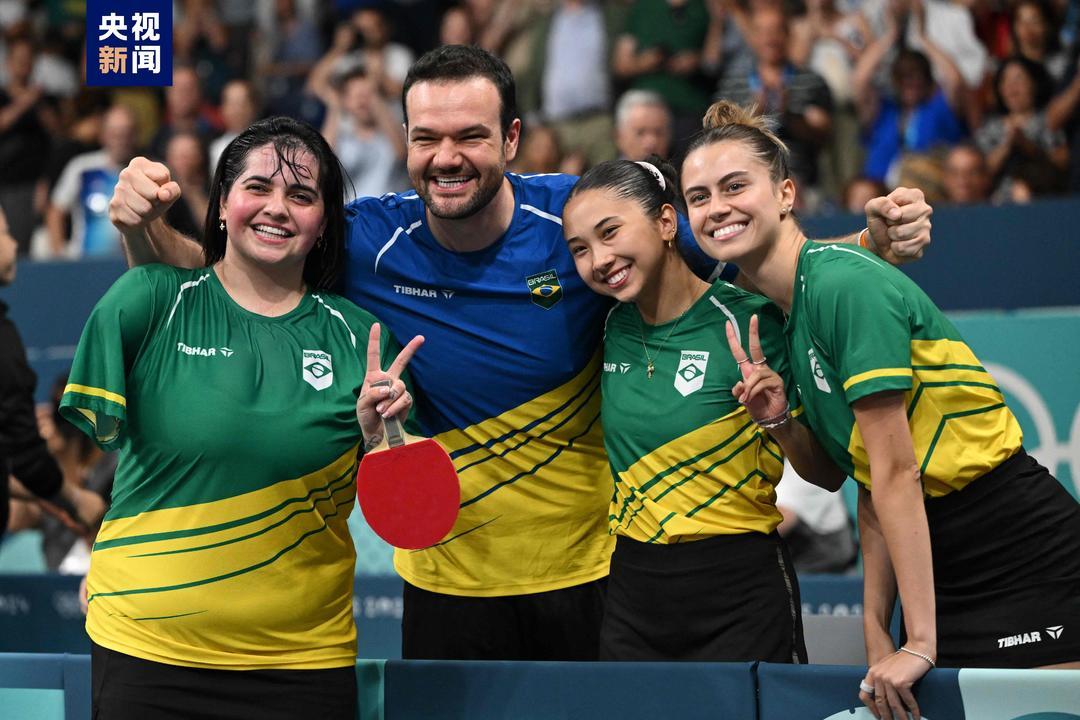布鲁娜·亚历山大(左一) 巴黎奥运会乒乓球女团1/8决赛
