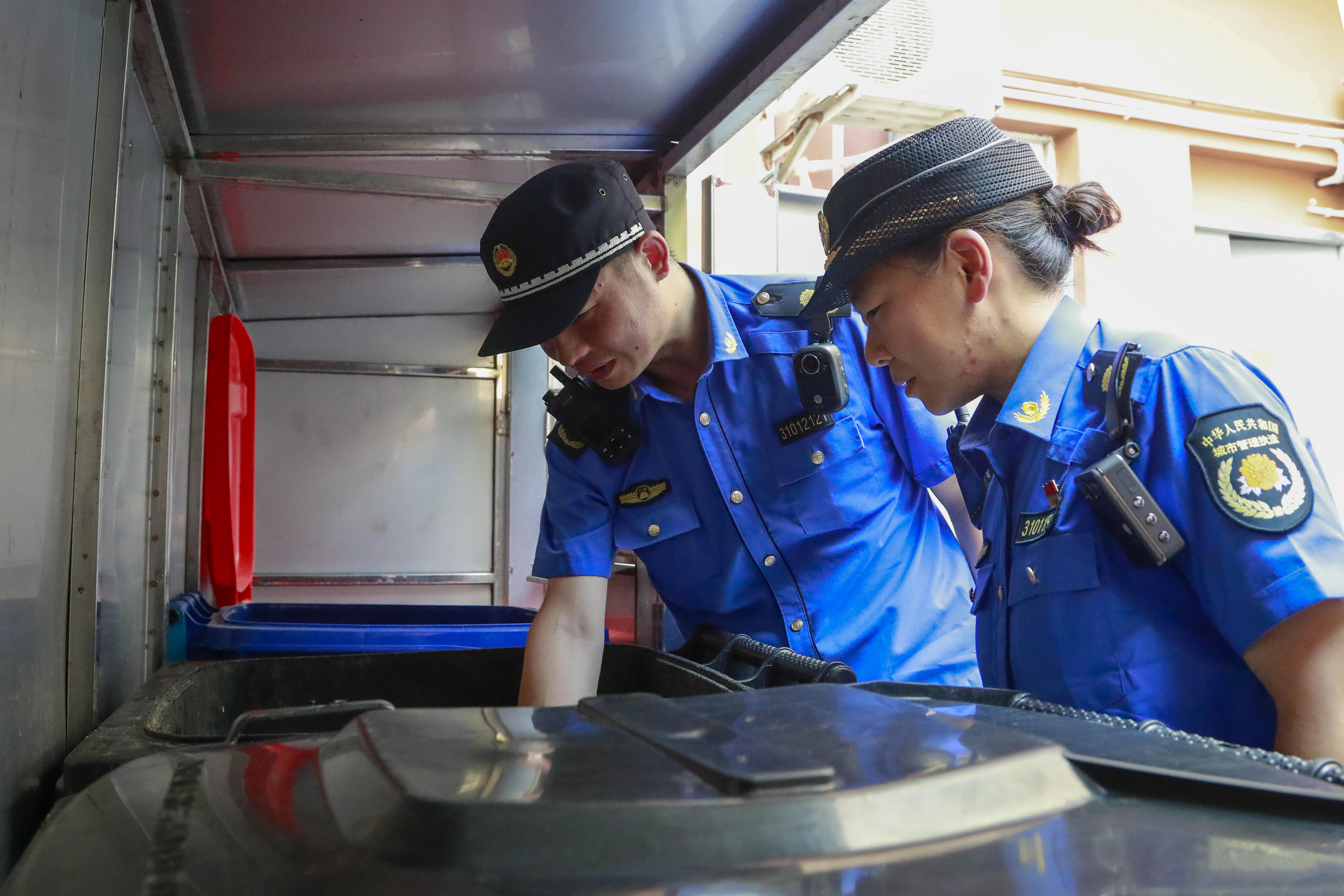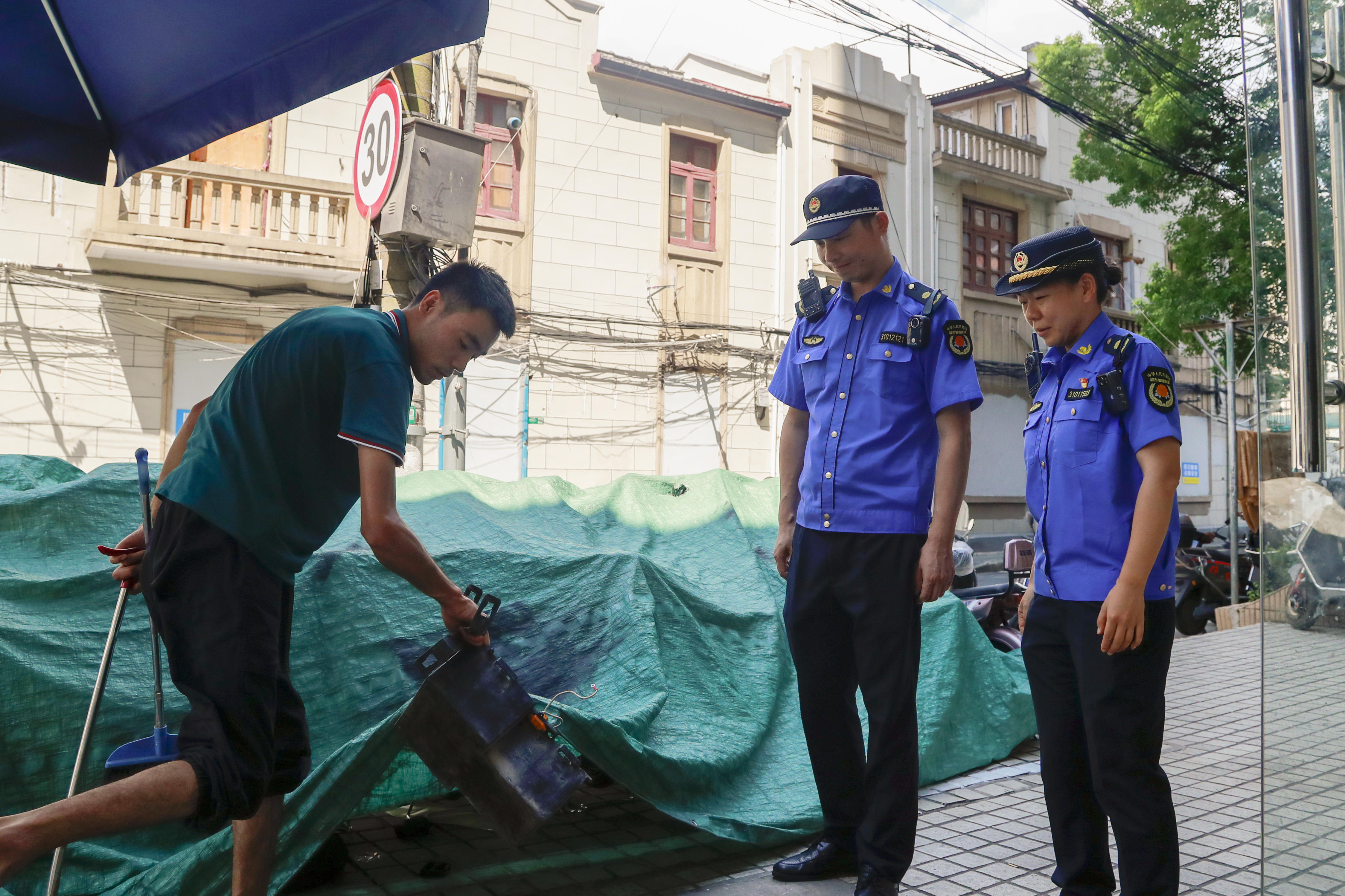进入8月的上海,已两次发布高温红色预警信号,最高气温甚至超过了40℃。一出门仿佛置身火炉,而老西门街道综合行政执法队队员施爱林和关瑜杰不服“暑”的身影,在老西门街道小西门居民区的街头巷尾不停穿梭。