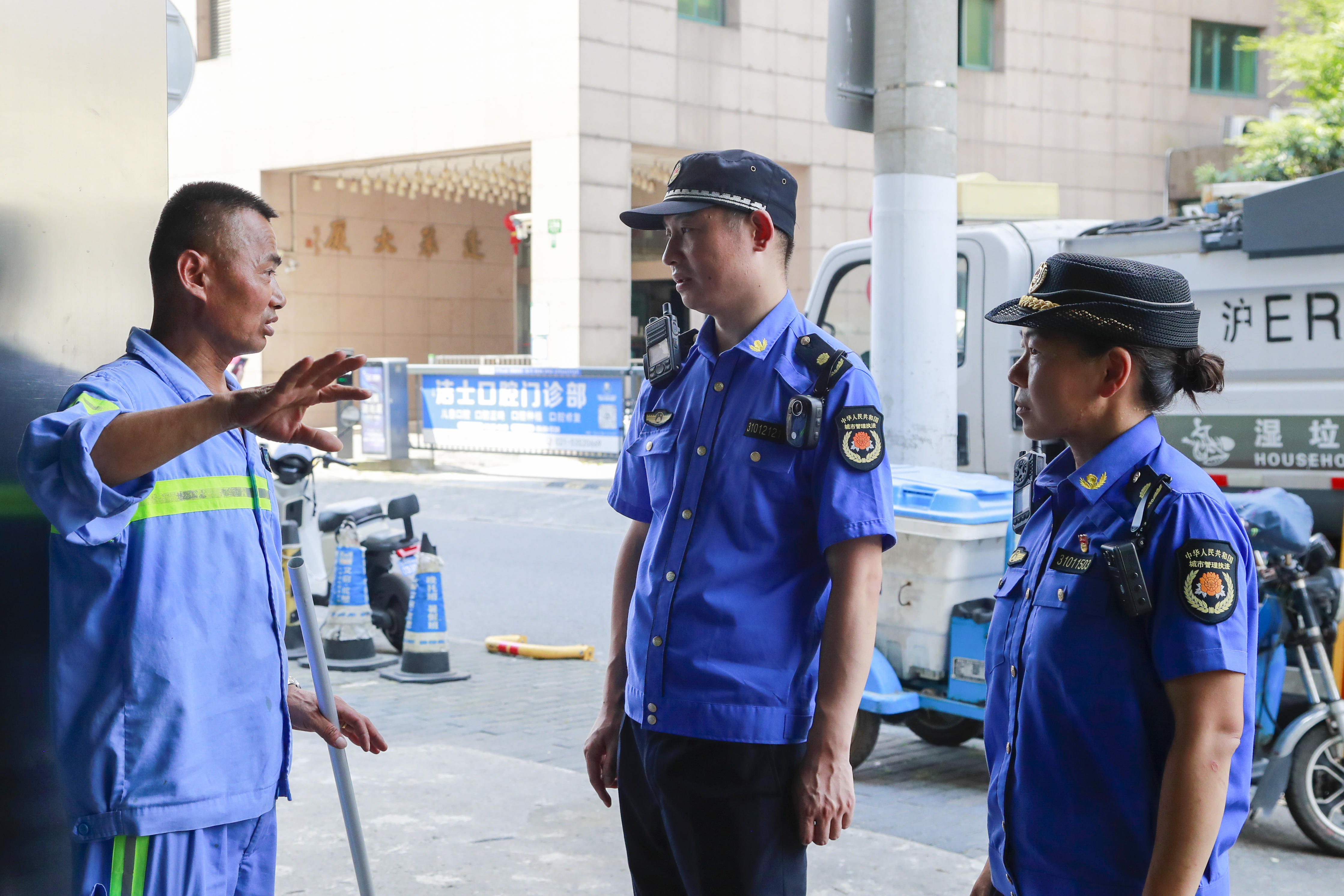 维护路面环境卫生、注意高空坠物、处理居民投诉……施爱林和关瑜杰和他们26位同事每天的工作远不止这些,他们在不同的小区来回、在每个商铺进出,垃圾清运站、施工工地都洒下了他们的汗水,施爱林和关瑜杰用坚守和付出,默默维护着街道和居民区的秩序与安全。