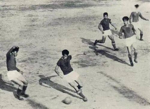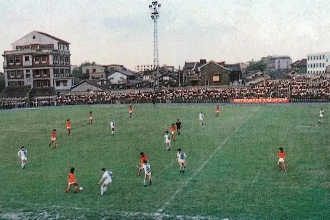 20世纪60年代沪南体育场举行全国足球联赛。右二为曾任国足队主教练的高丰文