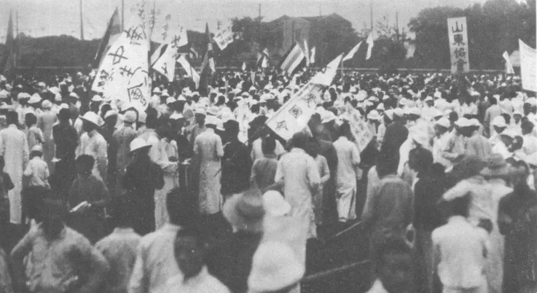 1919年5月7日,上海各界群众在公共体育场召开国民大会,声援北京学生的爱国行动