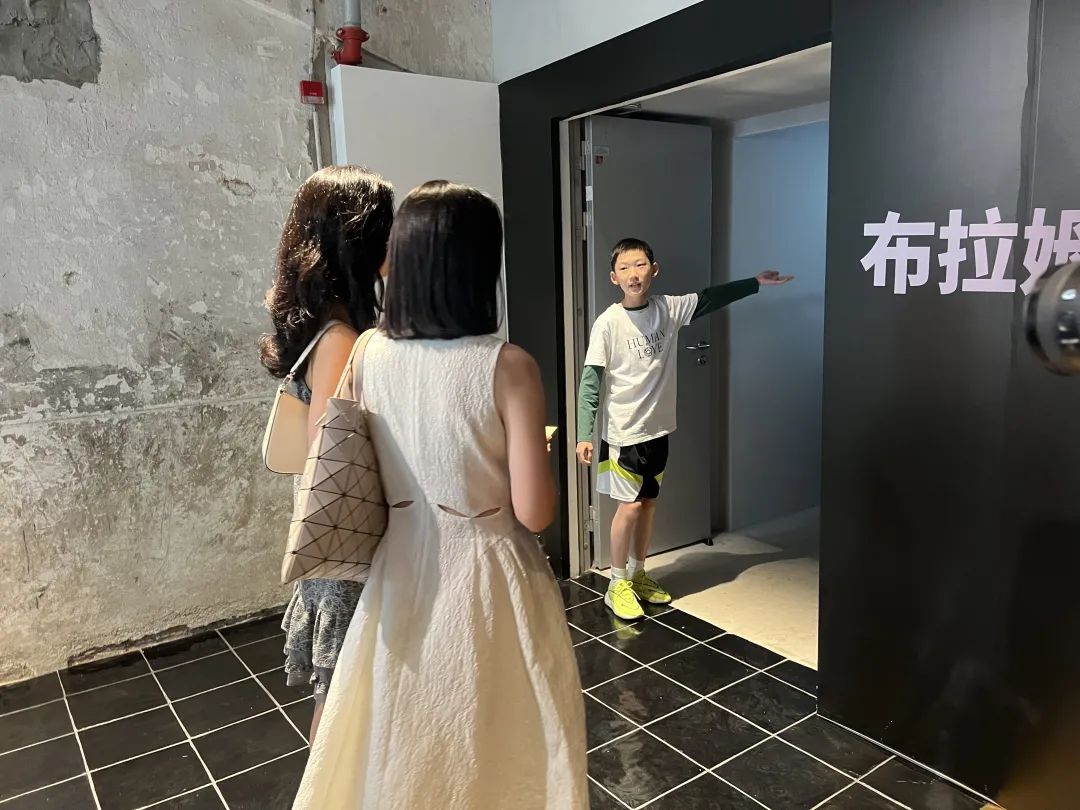 13岁男孩薛梓沐在《双重呈现》展览门口点位讲解。此处人流量大,环境较复杂,讲解挑战大。薛梓沐表示:“紧张确实会有。但这样的锻炼机会难得,会让我更大胆一些。”他希望以后还有机会来继续当“小小讲解员”。