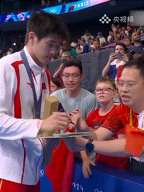 在赛后观众合影留念环节,有粉丝将国旗递上寻求签名,潘展乐婉拒说:“国旗上签不了。”转而用合影拍照的方式与粉丝们互动,画面非常有爱。