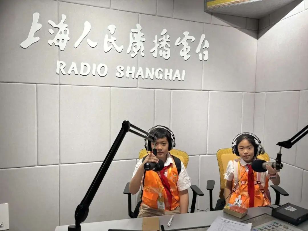 在模拟导播台,大宁少年推荐官们体验了上海广播电台主持人的专业工作台和录音设备,坐上广播主持人日常直播的工作台,体验了一把小主播的工作。