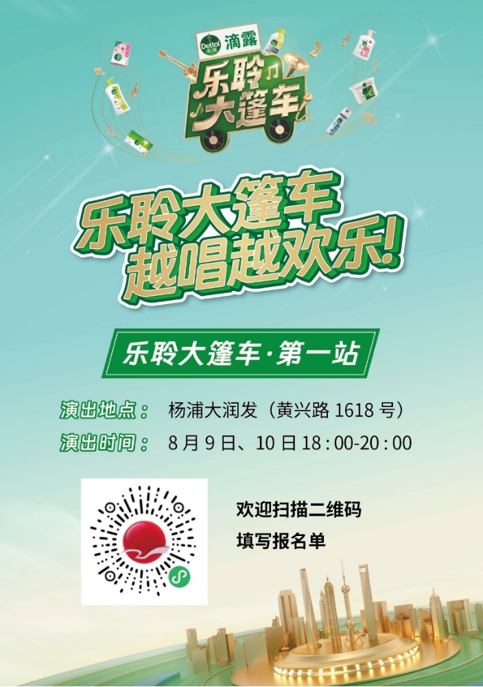 8月9日至8月10日,综艺节目《乐聆大篷车》将在大润发上海杨浦店(黄兴路1618号)开录。这是一个面向社区居民的唱歌挑战类节目,旨在让上海喜欢唱歌的朋友们,获得轻松展示自己的机会。晚上6点-8点,欢唱将正式开始!
