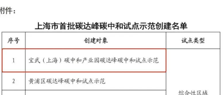 近日,市发展改革委开展了上海市首批碳达峰碳中和试点示范创建的遴选工作,并发布了首批候选对象名公示名单,宝武(上海)碳中和产业园成功入选!