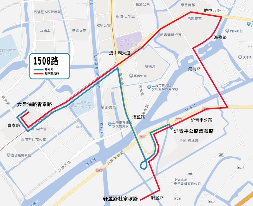 拟调整线路走向:上行自轩盈路杜家埭路起经轩盈路、漕盈路、沪青平公路、港俞路、海盈路、城中西路、淀山湖大道、青泰路、大盈浦路至大盈浦路青泰路止;下行循原线返回。