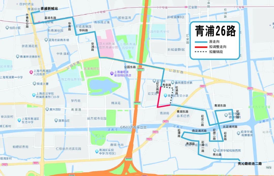 拟调整线路走向:上行自青浦新城站起经盈港东路、外青松公路、华科路、华浦路、公园东路、崧文南路、青湖东路、崧淀二路、北淀浦河路、崧润路、青湖东路、崧泉路、秀涓路、崧漪二路、南淀浦河路、崧潭路、秀涓路、崧漪一路、秀沁路至秀沁路崧涟二路止;下行循原线返回。